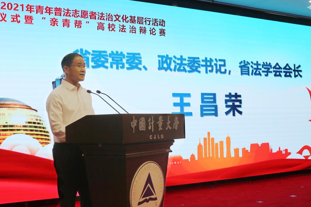 王昌荣指出,今年是建党100周年,是“八五”普法规划启动之年,也是法治浙江建设15周年。青年是祖国的未来、民族的希望,也是普法宣传的生力军、推动全面依法治国的栋梁之材,希望广大青年争当学深悟透习近平法治思想的排头兵,争当坚定不移走中国特色社会主义法治道路的排头兵,争当建设法治中国示范区的排头兵。