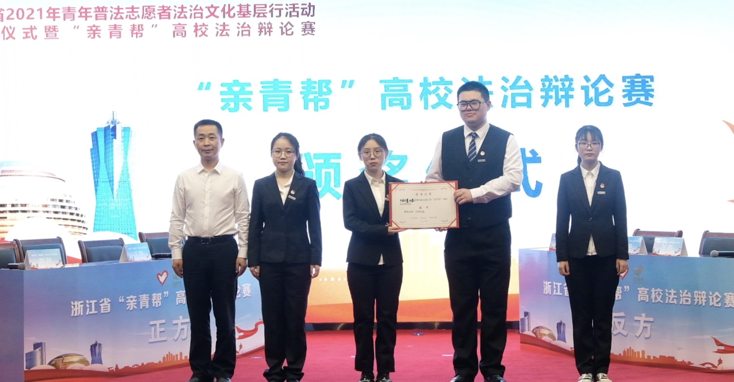 “我宣誓,志愿成为一名青年普法志愿者。遵行志愿者宗旨,弘扬宪法精神,把握机遇、锤炼自己,用专业的服务普及法律知识,为法治文化基层行贡献青春力量!”5月19日,浙江省2021年青年普法志愿者法治文化基层行活动启动仪式暨“亲青帮”高校法治辩论赛总决赛在我校成功举行,青年普法志愿者宣讲团首批成员代表在仪式上庄严宣誓。