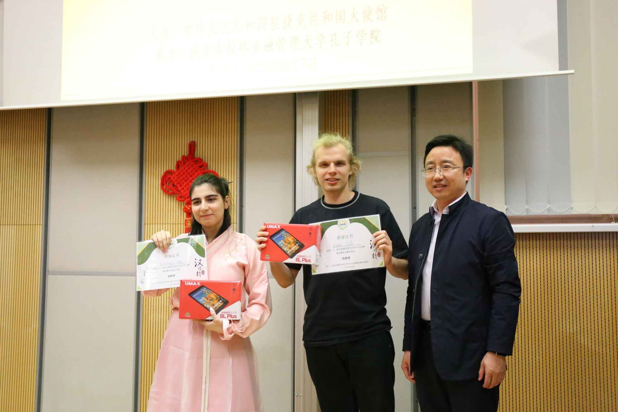 经过激烈的角逐,来自捷克的选手金阿弥(A-mi Kim)获得一等奖并将有资格代表捷克参加“汉语桥”世界大学生中文比赛全球总决赛。