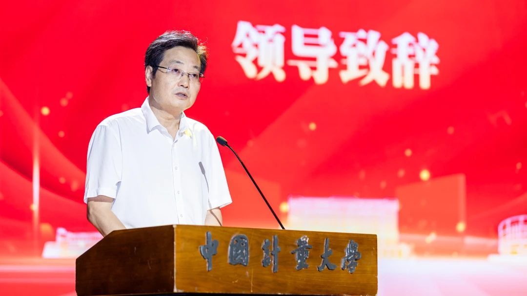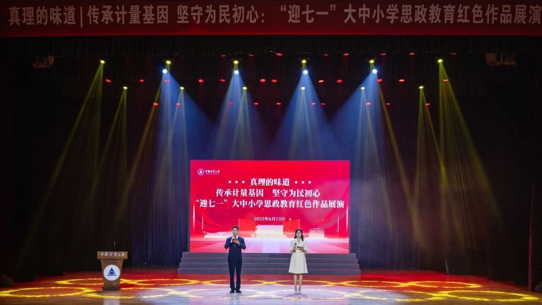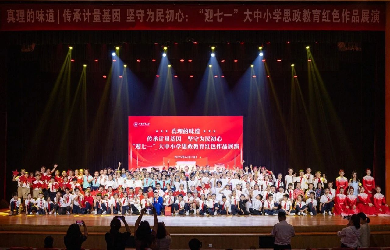 为庆祝中国共产党成立104周年,深化大中小学思想政治教育一体化建设,6月13日,中国计量大学宣传部、组织部、学工部、团委、马克思主义学院联合杭州江南实验学校、杭州启成学校、杭州采荷第一小学教育集团、杭州市钱塘区云帆小学、杭州市钱塘区义蓬第二小学、杭州市文海启源中学、杭州市钱塘区义蓬中学等学校共同举办“真理的味道:传承计量基因 坚守为民初心”迎七一红色作品展演活动,生动展示出一场融合革命精神与计量文化、贯通大中小学各学段的思政教育盛宴。中国计量大学党委副书记程刚、浙江省教育厅宣传统战处二级调研员胡华跃、钱塘区教育局副局长江志明等领导和嘉宾参加活动。