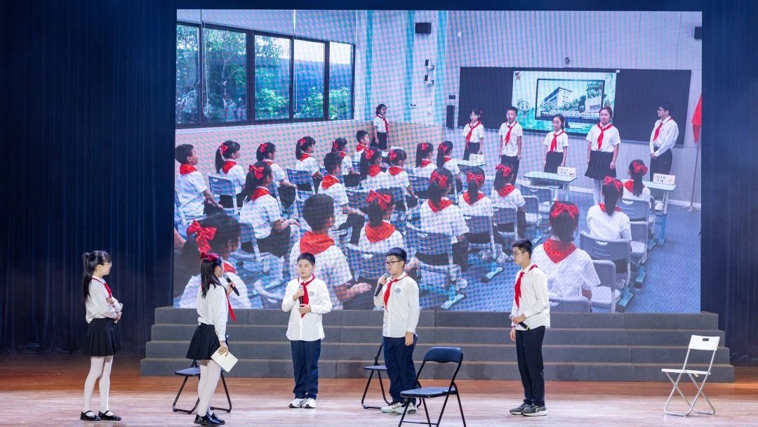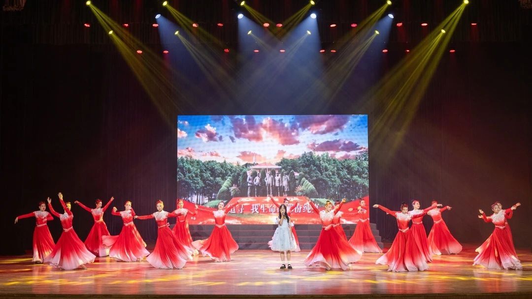 展演中大中小学生同台献艺,通过情景朗诵、短剧、课本剧、舞台剧、诗朗诵、歌伴舞、影片讲解等多种艺术形式诠释红色精神与时代担当。
