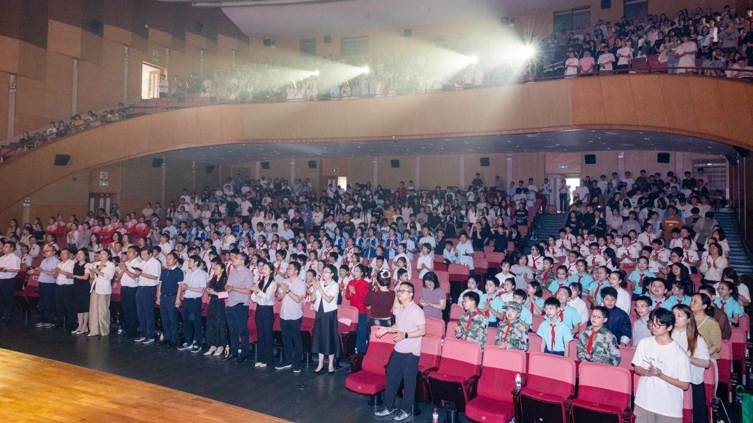 在“未来征途·精量中国”篇章,启成学校的诗朗诵《仰望星空》表达了少年儿童对航天科技、星辰大海的向往,唱响了“科技强国”的梦想。文海启源中学的歌伴舞《追寻》,唱出舞出了新时代青少年追寻革命足迹、赓续红色血脉的决心。“它的容量只有一升,体格不大,颜值不高,隐约可见的铭文却暗示着它并非寻常之辈。”中国计量大学的影片讲解《商鞅方升》,带领观众领略“以规矩成方圆”的治国理念,深刻揭示了从古至今“精量”对国家治理和社会发展的重要性。展演最后,全场师生高唱《我们走在大路上》,在意气风发、斗志昂扬的雄壮歌声中,活动圆满落幕。
