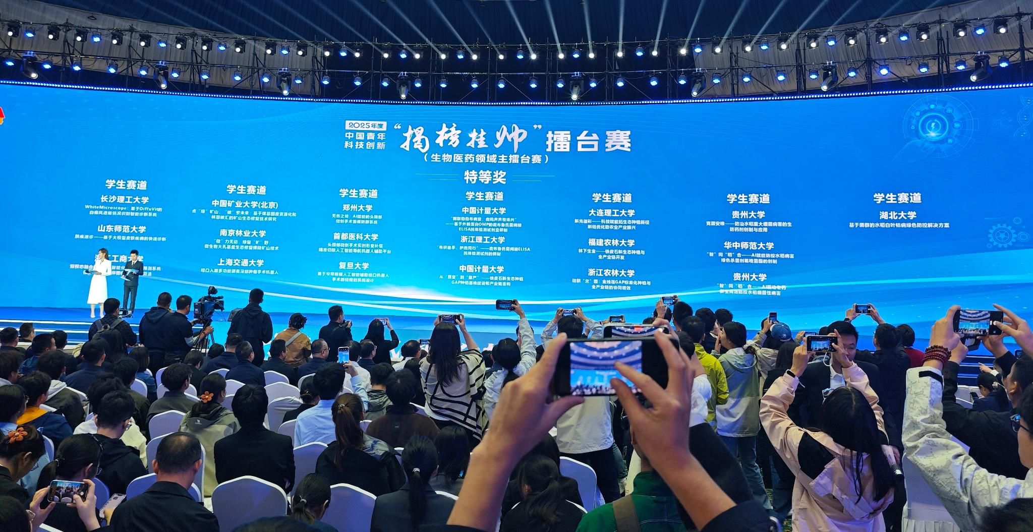 本届国赛获奖作品中,由光电学院尹禄、王乐、王坤阳指导的作品《基于微反射镜阵列的高分辨率光谱仪》和光电学院沈洋、倪军、周鹏威指导的作品《知微见著——高性能光纤连接器端面缺陷检测仪》两件作品斩获主体赛一等奖,由生命学院张拥军、张明、柴文祥老师指导的作品《从药用资源优势到健康效应:膳食纤维超高效自由基-酶协同改性与血糖稳态维持机制》获主体赛二等奖,由计测学院包福兵、凃程旭、赵亚磊指导的作品《高压液相微秒级压力传感器动态校准仪》和材化学院康巧玲、李佩恒、陈达指导的作品《高熵驱动长寿命高比能锂电负极技术的开发应用》获主体赛三等奖。此外,在“揭榜挂帅”专项赛中,我校学子在多个榜单中脱颖而出,斩获特等奖3项、一等奖8项、二等奖4项、三等奖9项、优胜奖4项。