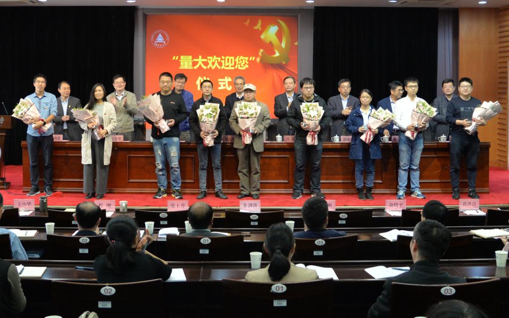 党课前还特别举行了“量大欢迎您”仪式,校党政领导班子成员为博导牟介刚、国家“万人计划”青年拔尖人才徐沛等9位新进教师代表佩戴校徽并赠送鲜花。