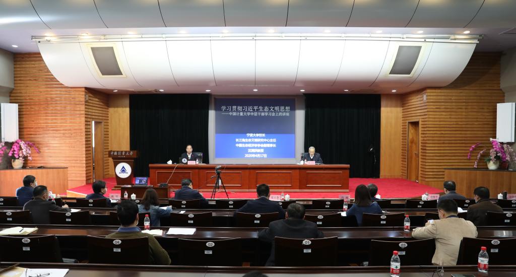 4月17日,学校召开学习党的十九届四中全会、省委十四届六次全会精神和习近平总书记在浙江考察时重要讲话精神报告会。校党委书记张土乔主持会议。宁波大学校长、博士生导师沈满洪教授应邀作“学习贯彻习近平生态文明思想”专题报告。