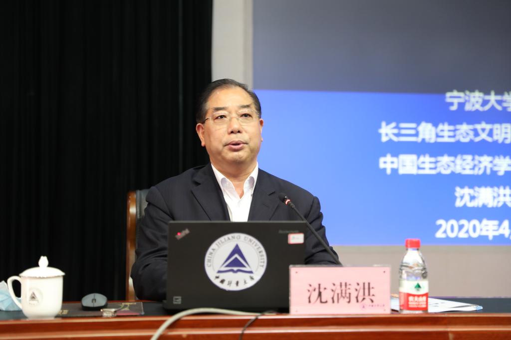 沈满洪详细阐述了习近平生态文明思想的浙江萌发、全面升华、理论体系和重大意义,指出以“两山”重要思想为核心的习近平生态文明思想发源于浙江,也首先自觉践行于浙江,仅仅十多年时间浙江就完成了生态环境质量的总体好转。习近平生态文明思想为世界各国环境保护提供了中国智慧,为应对国际环境合作提供了中国方案,为美丽世界建设提供了重要理论支撑。他强调,浙江省生态文明建设已经走在全国前列,我们要以更宽广的视野、更高远的目标、更强大的力度推进生态文明建设,努力成为新时代全面展示中国特色社会主义制度优越性的重要窗口,努力为美丽世界建设提供中国方案。