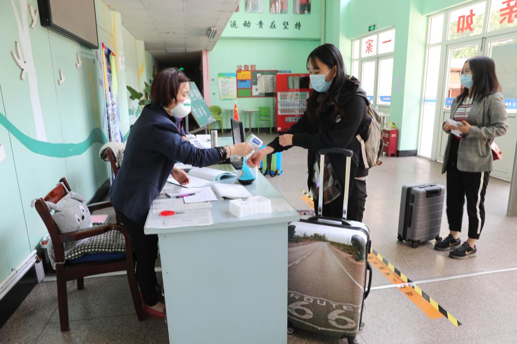 学校为同学们平安返校做了充分准备和悉心安排。学生下地铁站后,便可乘坐摆渡车抵达学校。在志愿者的引导下,来到所在学院报到点,按照“一查二测三核实四通过”流程进校。进入宿舍前,还需通过体温复测。