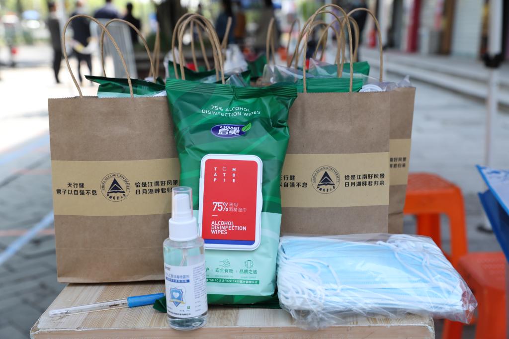 学校还为困难生准备了爱心健康包,内有口罩、体温计、75%乙醇消毒喷雾剂、75%医用酒精湿巾,供学生日常检测使用。这些健康包来自北京康斯特仪表科技股份有限公司总经理、84级校友何欣,广州高铁计量检测股份有限公司董事长陈国光,宁波前程人力资源有限公司董事长、01级校友朱利峰,杭州夏妙客电子商务有限公司创始人、07级校友李晨,10级校友滕雨佳等的捐赠,凝聚了校友们对学校的深情。