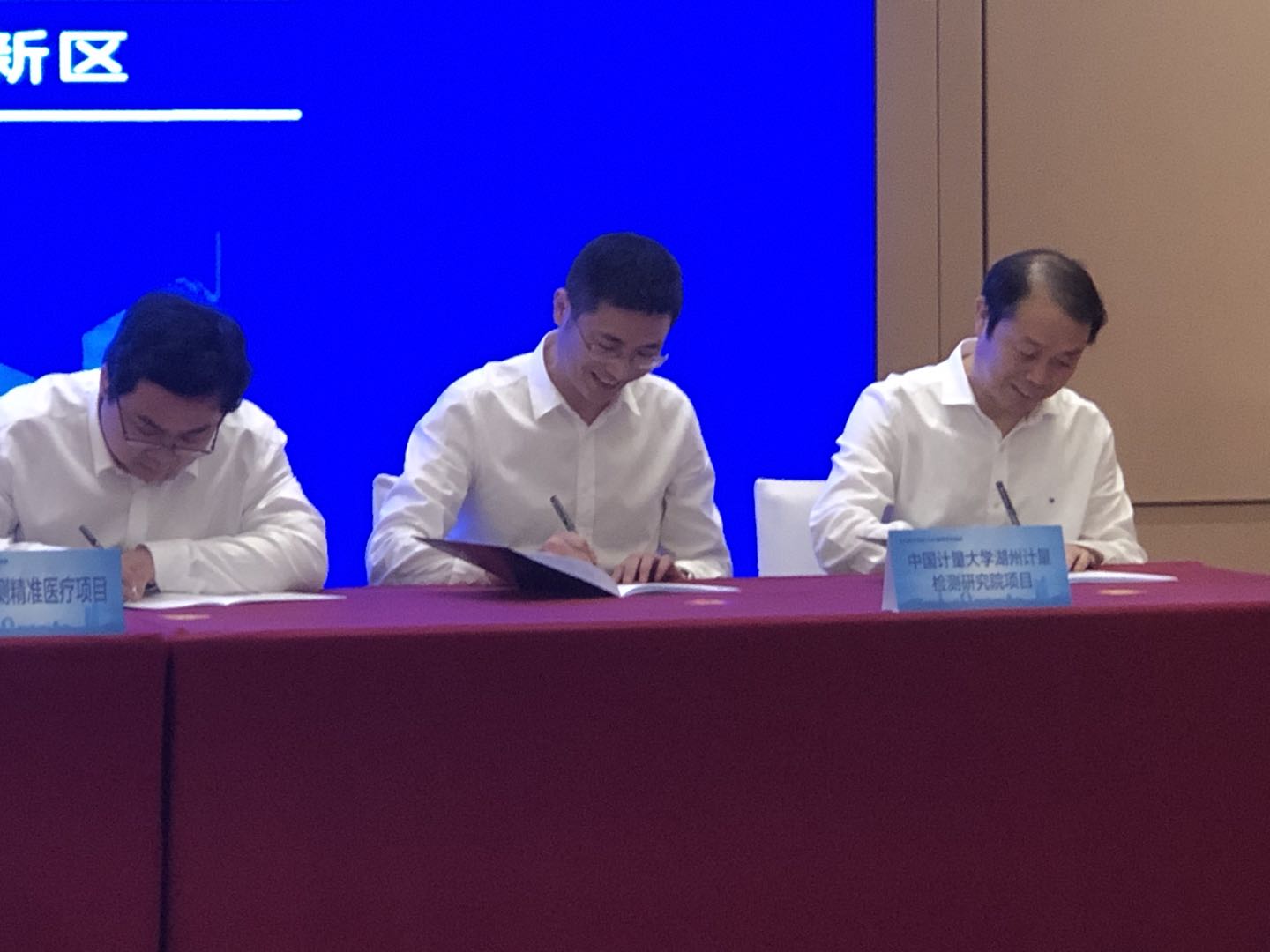 5月11日下午,湖州市重大项目(人才)集中签约活动举行,总投资775亿元的18个重大产业项目、12个高层次人才项目等成功签约。作为湖州市重大项目之一——我校与南太湖新区共建的中国计量大学湖州计量检测研究院正式签约。副校长金尚忠出席签约仪式,科技处、外联处及机电工程学院有关负责人参加集中签约活动。