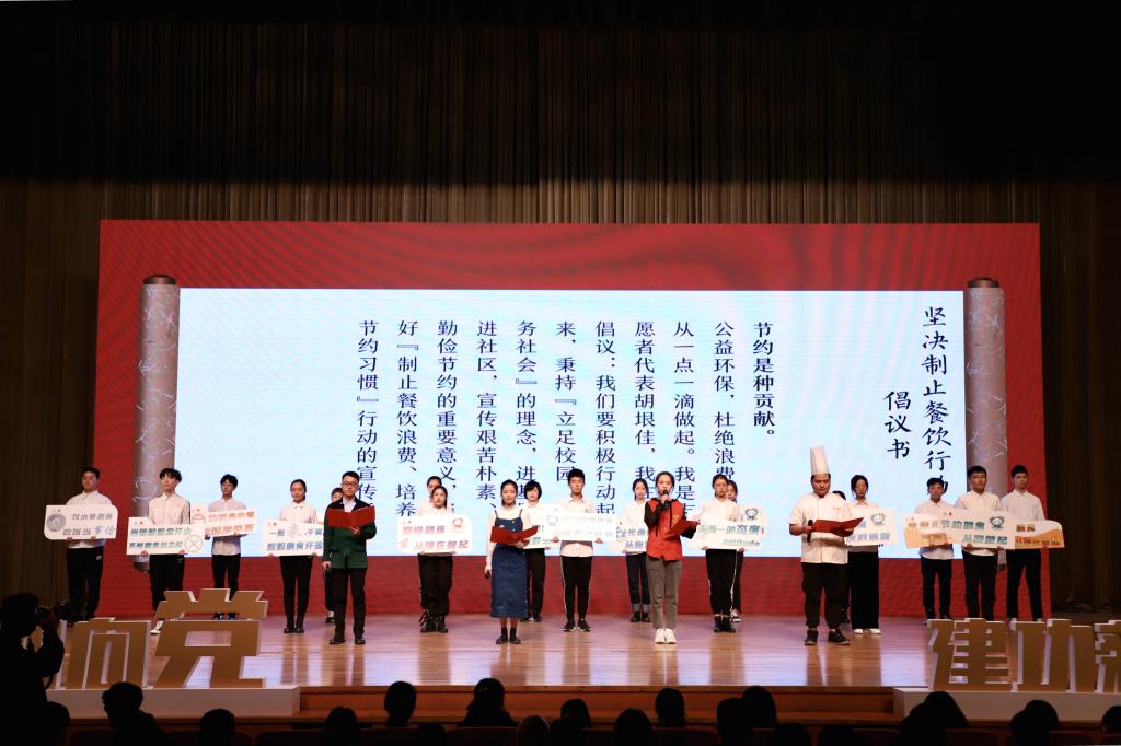 活动现场举行了中国计量大学深化“坚决制止餐饮浪费行为”行动推进仪式。四位师生员工代表共同宣读了中国计量大学《坚决制止餐饮行为浪费倡议书》,向全体师生发出“制止餐饮浪费,量大人在行动”的号召。
