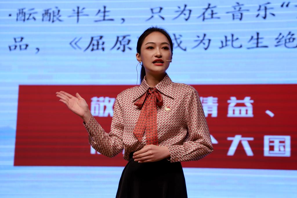 浙江省高校思政微课大赛特等奖获得者、浙江师范大学翁颖老师在思政公开课《为时代祝酒,让希望萌发》中,从音乐工作者的角度,讲述她以谱写改革开放赞歌的音乐家、改革先锋奖章获得者施光南老先生为榜样,践行施光南先生的精神,通过自己的切身感受引起大家强烈共鸣,激发新时代青年的奋斗理想,为施老先生诞辰80周年献礼。