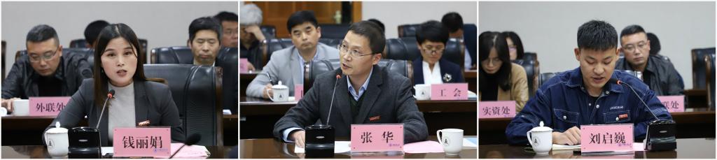 机电工程学院副院长钱丽娟教授汇报了对全会精神的学习情况,表示将坚持立德树人根本任务,为党和国家培养更多高质量人才;坚持问题导向,找准科研攻关方向,在服务经济社会发展中彰显科学价值。国际商务硕士点学科负责人张华教授从全会公报关键词谈了对高质量发展新要求的理解,表示将力争为服务国家和地方经济社会高质量发展培养更多的行业特色人才。管理科学与工程专业研究生刘启巍介绍了自己积极投身质量管理实地调研的经历和参与科研项目的创新实践,展示了中量大学子积极向上的良好风貌。