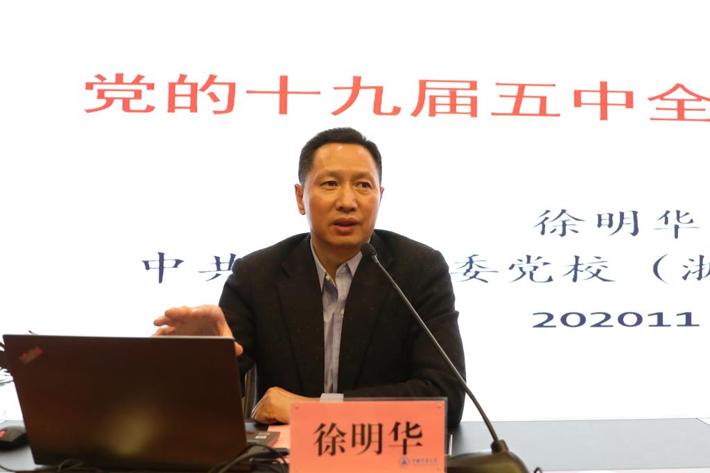 报告会上,徐明华对党的十九届五中全会精神进行了全面阐释和系统讲解。他指出,党的十九届五中全会是在全面建成小康社会胜利在望、全面建设社会主义现代化国家新征程即将开启的重要历史时刻,在我国进入新发展阶段、实现中华民族伟大复兴正处于关键时期召开的一次具有全局性、历史性意义的大会。