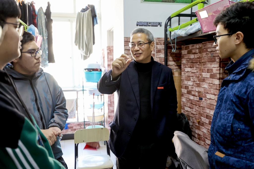 张土乔书记为学生代表送去了冬日温暖,为两个寝室赠送《习近平与大学生朋友们》《中国2049》和《为什么是中国》等书籍,并预祝同学们期末考试顺利,度过一个祥和安全的中国春节!