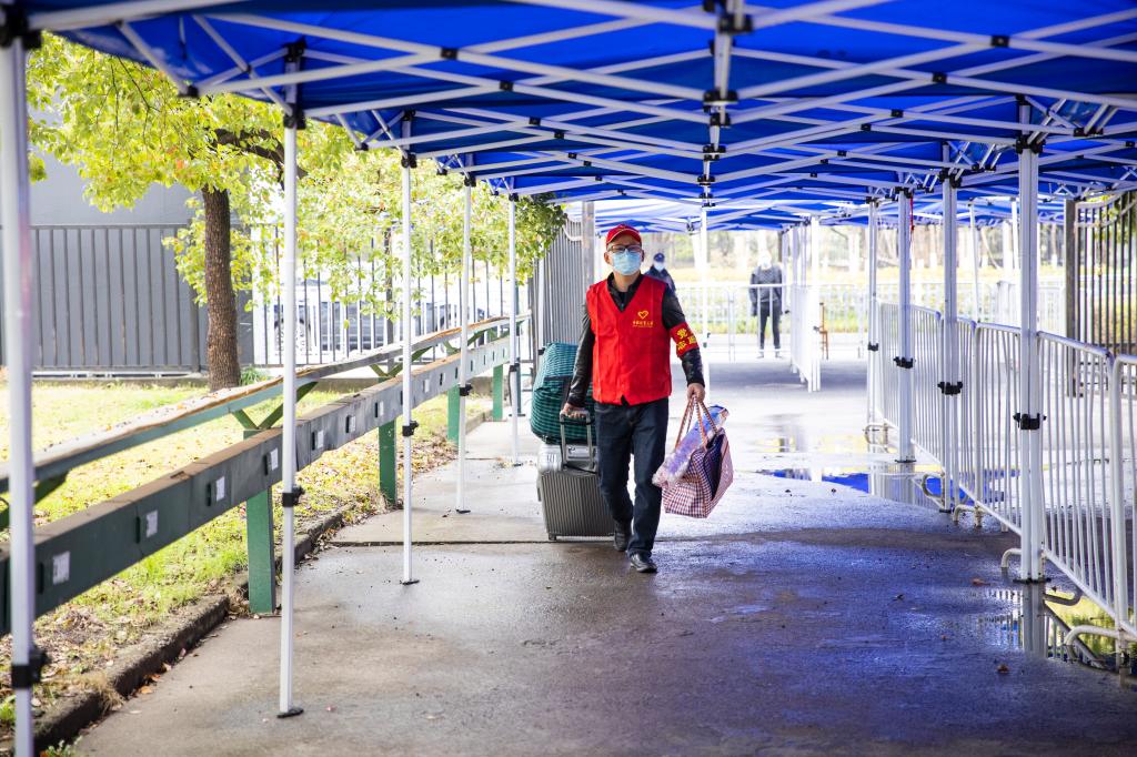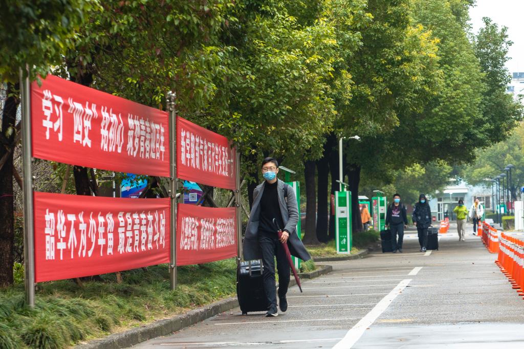 学校在地铁1号线“文泽路”站A口设有校车定点接站服务。教工党员志愿者们身着量大红马甲,扛起学生的大包小包,细致认真地做好一系列志愿服务。生命科学学院19级食品质量与安全专业的舒焕琪来自衢州,中午11:30左右,她在志愿者的指引下顺利坐上了地铁口的接站车返校,“下车时司机师傅还帮忙拿行李了。”