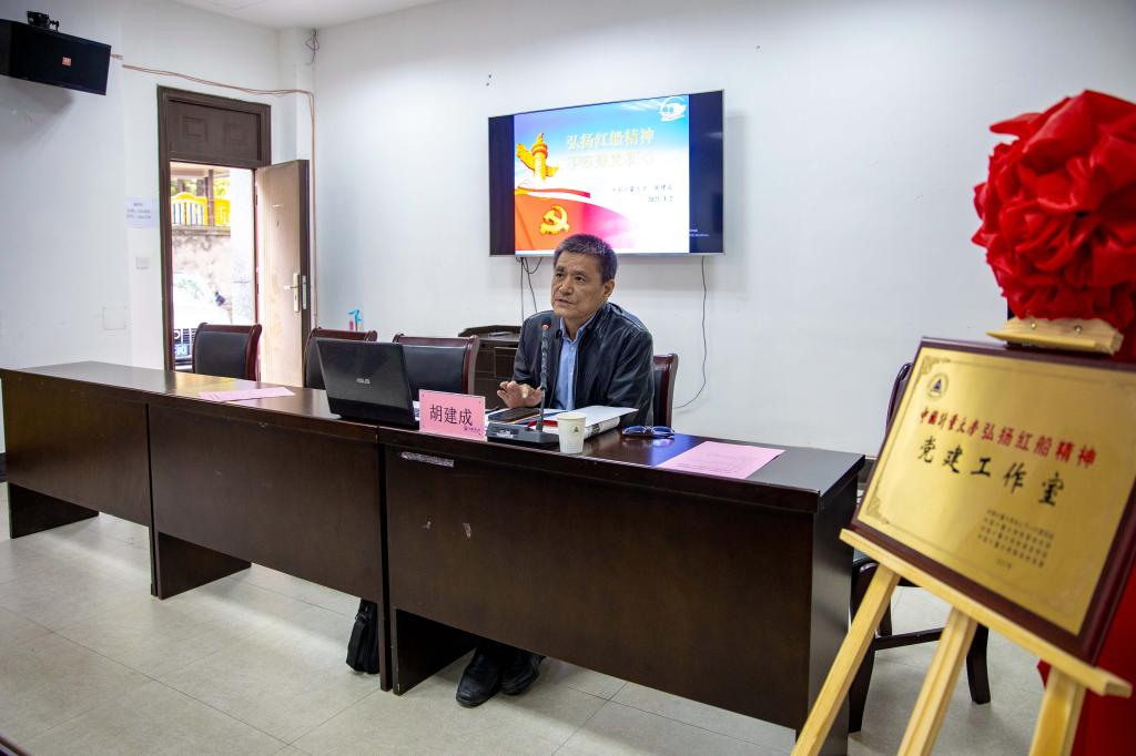 “践行红船精神,就是不忘初心、牢记使命,让红船精神绽放时代光芒。”胡建成为现场的老领导、老党员们讲授了“弘扬红船精神 不忘建党初心”专题党课,这是“弘扬红船精神”党建工作室成立后的第一堂课。胡建成退休后坚持弘扬“红船精神”,巡回讲党课已近80场。“我计划在今年七一前,完成整整一百场党课,以此向建党百年献礼。”胡建成说。