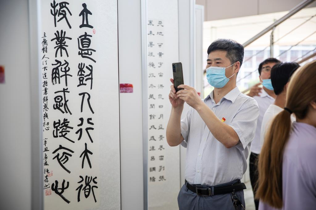 百年贺伟业,艺苑竞风华。6月23日,我校“我心向党·百画百作迎百年”庆祝中国共产党建党100周年主题作品展在嘉量大会堂大厅开幕,在党的百年华诞之际,回顾党的光辉历程,讴歌党的丰功伟绩,展示党的宝贵经验,推动学校党史学习教育走深走实。
