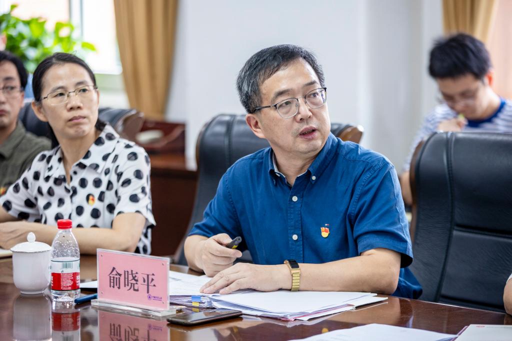 俞晓平作为团队负责人介绍了团队在师德师风、教育教学、科研创新、社会服务、团队建设等方面的工作开展情况和未来五年团队建设规划。他在发言中谈到,生物计量与检验检疫教师团队时刻牢记习近平同志2004年视察学校时的殷切嘱托,做实做强“老本行”,不断提高教书育人质量和科研产出成果水平,服务经济社会发展,于2018年被认定为首批“全国高校黄大年式教师团队”。团队全体教师将认真学习贯彻落实总书记重要回信精神,继续学习弘扬黄大年同志的高尚精神,立德修身,潜心治学,开拓创新,努力成为先进思想文化的传播者、党执政的坚定支持者、学生健康成长的指导者和引路人,为加快建设特色鲜明的高水平大学、培养堪当民族复兴大任的时代新人贡献力量。