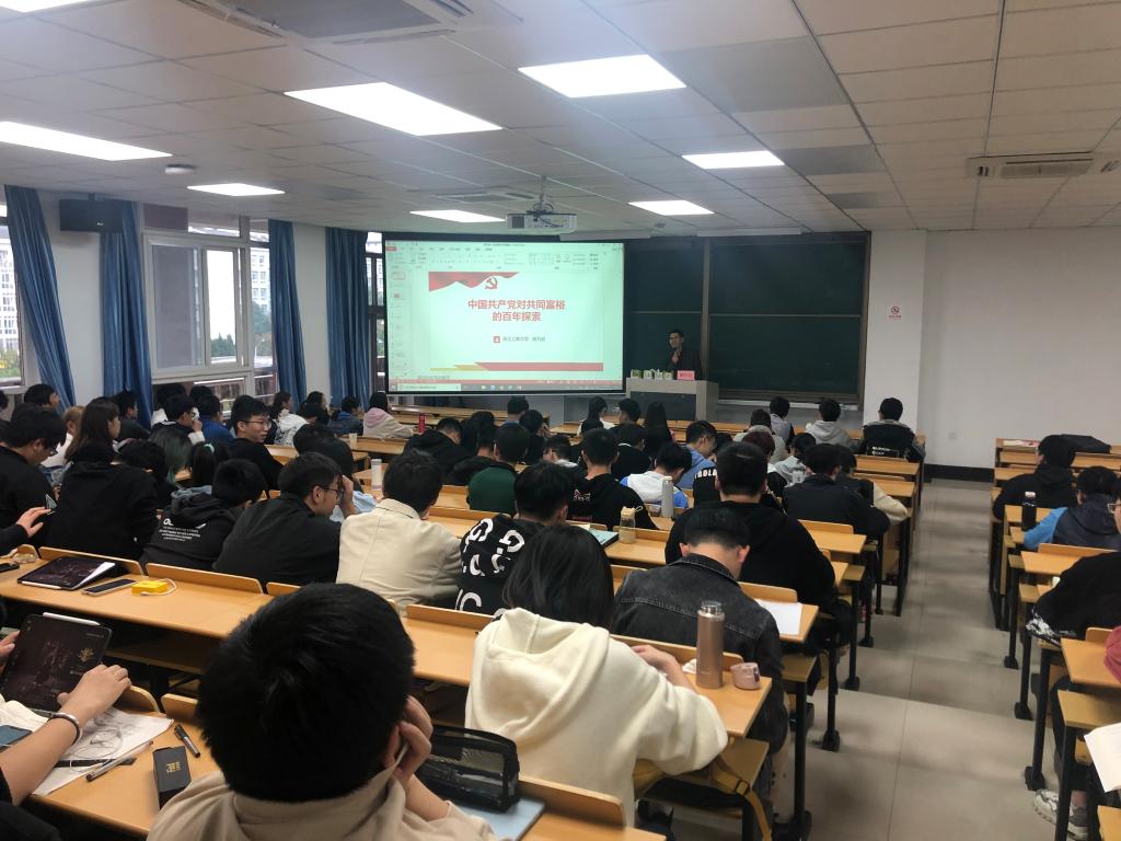除邀请校外专家外,省属高校“共同富裕”宣讲团成员、我校马克思主义学院教师周爽、谢婉莹深入各二级学院,通过专题讲座、形势与政策课等形式开展宣讲。截至目前,学校已开展“开学第一课”“共同富裕”浙江省高校千场青年理论主题宣讲活动十余场。