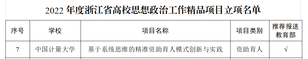 近日,浙江省教育厅公布了2022年度省高校思想政治工作有关培育建设项目立项名单,我校2个项目入选立项。其中,资助育人项目《基于系统思维的精准资助育人模式创新与实践》入选思想政治工作精品项目名单并获批向教育部推荐,法学院姚昱帆入选省高校网络教育名师培育支持计划立项名单。