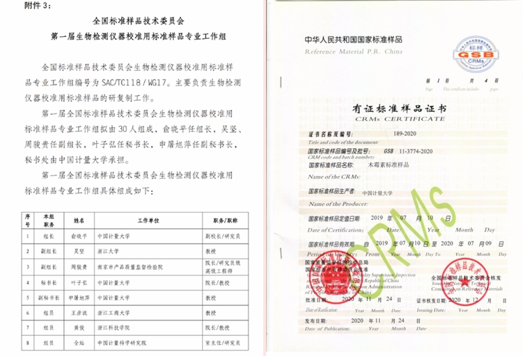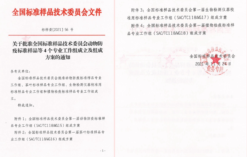 2021年11月24日,由我校牵头筹建的生物检测仪器校准用标准样品专业工作组获全国标准样品技术委员批复正式成立,工作组编号为SAC/TC 118/WG17,主要负责生物大分子和有机体检测仪器校准用标准样品研复制的申报、审批、立项、监查、评审等工作。第一届工作组由30人组成,分别来自全国有关生物检测、检验检疫、计量校准、仪器开发等领域的专家,秘书处设在我校。工作组组长、我校副校长俞晓平研究员表示,这标志着我国生物检测仪器相关标准样品工作步入新的发展阶段。