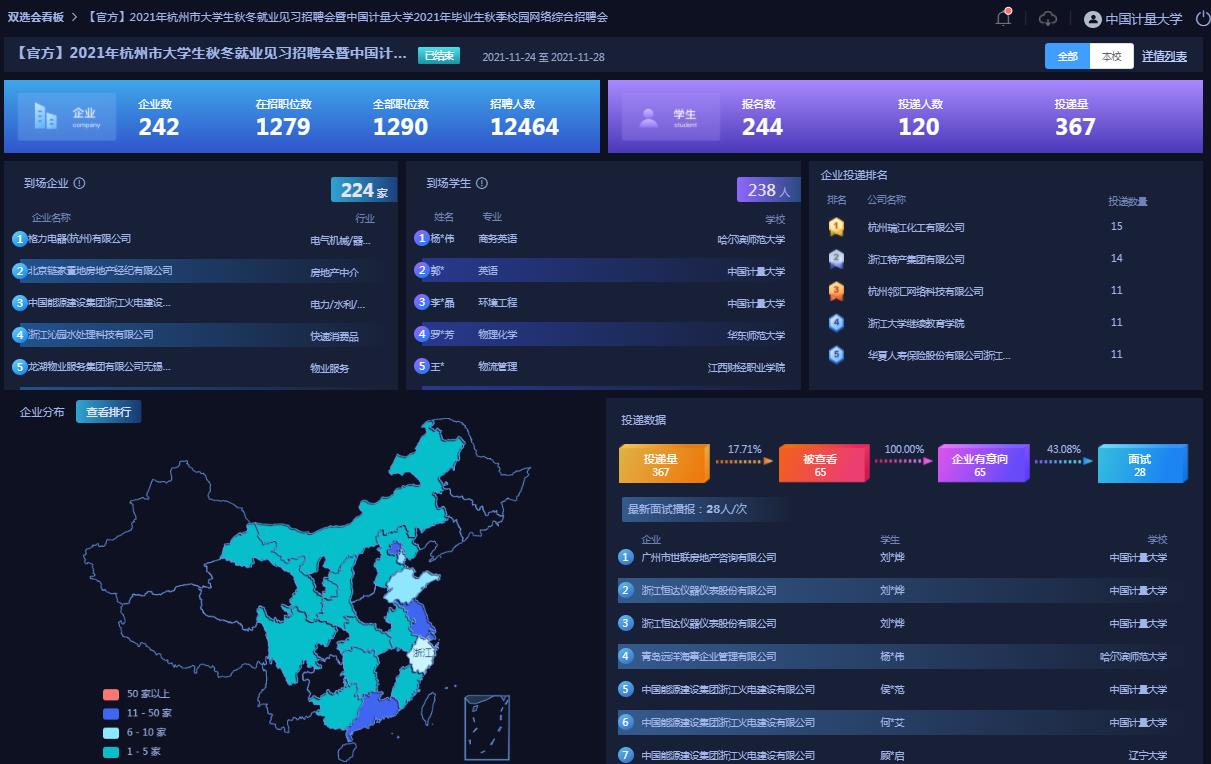 为满足用人单位疫情防控常态化条件下招才引智需求,促进我校2022届毕业生更高质量更充分就业,11月24日至28日,我校联合杭州市就业管理服务中心举办2021年杭州市大学生秋冬就业见习招聘会暨中国计量大学2021年毕业生秋季校园网络综合招聘会。