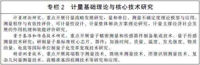 (四)加强计量基础和前沿技术研究。加强计量学基础理论和核心技术的原始创新。实施“量子度量衡”计划,重点研究基于量子效应和物理常数的量子计量技术及计量基准、标准装置小型化技术,突破量子传感和芯片级计量标准技术,形成核心器件研制能力。研究人工智能、生物技术、新材料、新能源、先进制造和新一代信息技术等领域精密测量技术。开展测量不确定度、测量程序与有效性评价、计量作用机理和效能评价等理论研究。