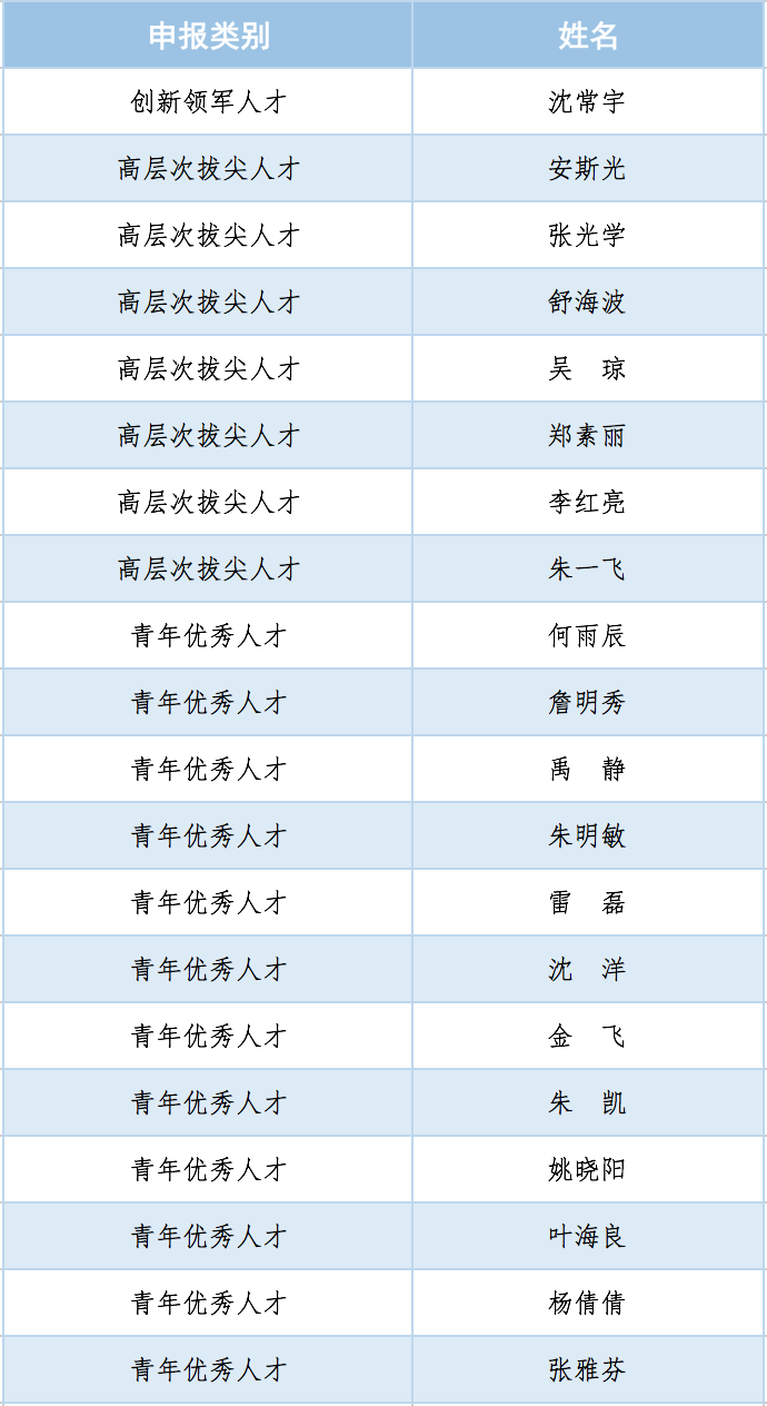 中国计量大学第二批“浙江省高校领军人才培养计划”培养对象名单