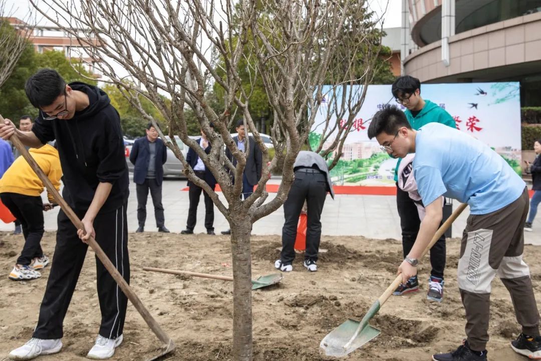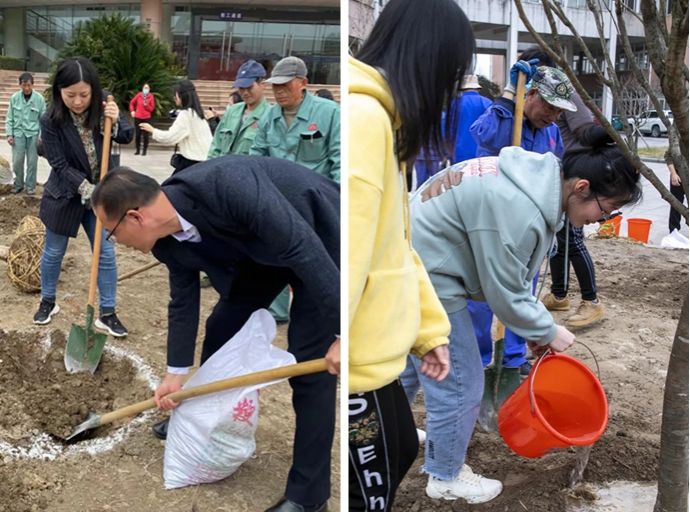 嘉量大会堂前,处处是师生们忙碌的身影,一派热火朝天的景象。生命科学学院教师杨倩倩,近日入选了第二批“浙江省高校领军人才培养计划”培养对象。这是她入校的第8个年头,“很有仪式感,种下小树苗就是播种希望。”博士期间,杨倩倩从事植物检疫与入侵生物学方向研究,如今也始终跟植物保护打着交道,对此次植树活动,她也有自己的感受,“我们教师就好比这棵小树苗,学校就像沃土,给了每个人成长和发展的空间。我们也应该不断精进自己,往下扎根。”