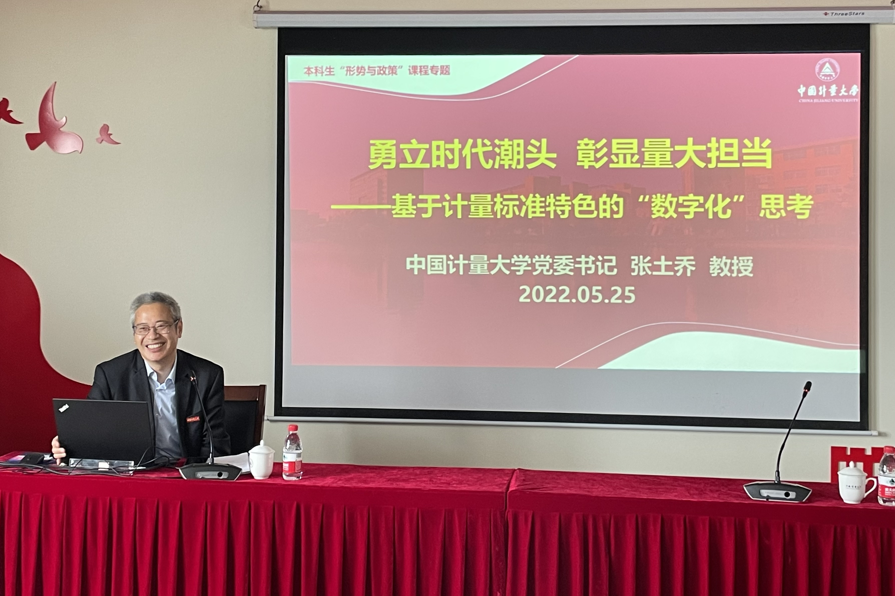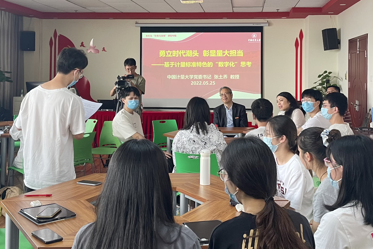 最后,张土乔对同学们提出的意见建议一一给予回应,勉励师生们深入学习习近平总书记关于数字化的重要论述,顺应数字化浪潮,坚定理想信念,练就专业本领,把中量大人的初心和使命同中国共产党人的初心和使命结合起来,秉承计量人科学严谨、精益求精、踏实肯干、求真务实的精神,精思国计,细量民生,为实现中华民族伟大复兴而踔厉奋发、勇毅前行。