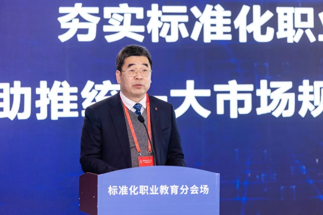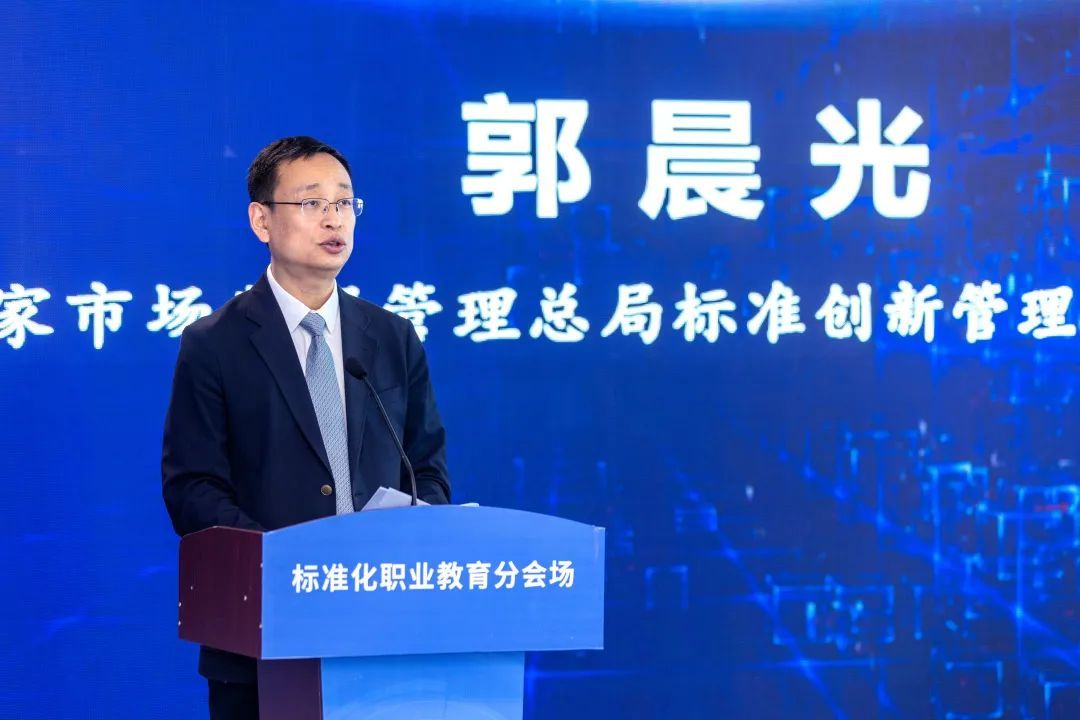 郭晨光代表国家标准委致辞时指出,举办首届中国标准化大会标准化职业教育分会,共话标准化人才发展未来,对贯彻落实《国家标准化发展纲要》中关于加强标准化人才队伍建设的要求具有十分重要的意义。他从国内和国际两个维度阐述了加强标准化人才培养的重要性,系统总结了近年来我国在标准化职业教育方面取得的成绩。他强调,国家高度重视标准化人才工作,国家标准委正与中组部、教育部、人力资源和社会保障部、国资委、全国工商联等部门联合推进《标准化人才培养行动计划》的制定,文件的出台将为我国标准化人才的培养、认定、管理和使用提供政策支持,也将为标准化人才培养工作指明方向。