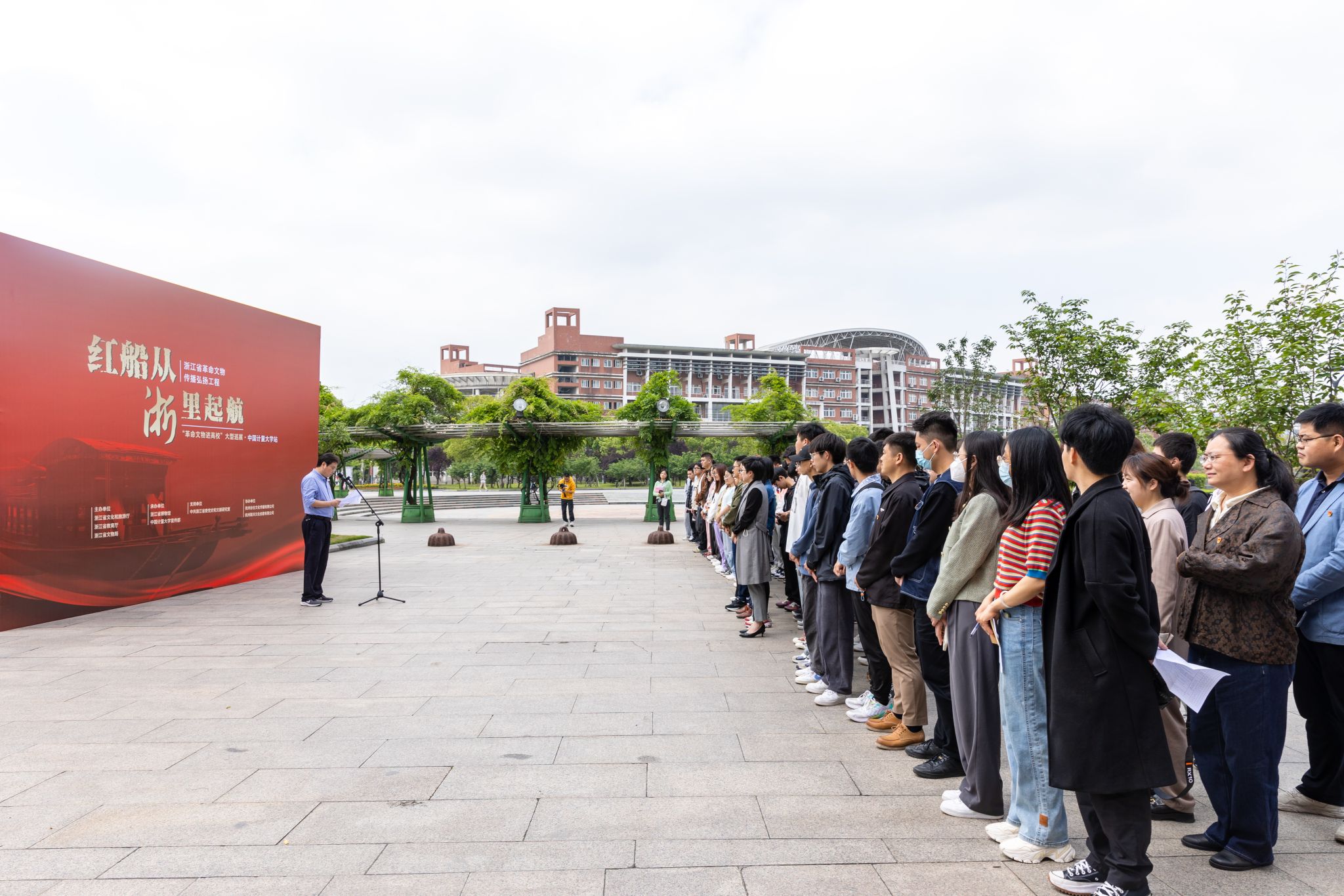 据悉,此次巡展将在我校嘉量大会堂一楼大厅持续至5月14日。活动由浙江省文化和旅游厅、浙江省教育厅、浙江省文物局主办,浙江省博物馆、中国计量大学宣传部承办,以“革命文物”为载体,遴选了100件具有辨识度的浙江革命文物讲述中国共产党在浙江的百年风华,精心打造“红船从‘浙’里起航”主题展览,并上线数字云展,现场还设置了不同的展教互动活动,如版花拓版体验、挂饰制作等,通过“定制式展陈+数字云展+配套展教活动”的方式,让革命文物真正走进高校,走近青年。