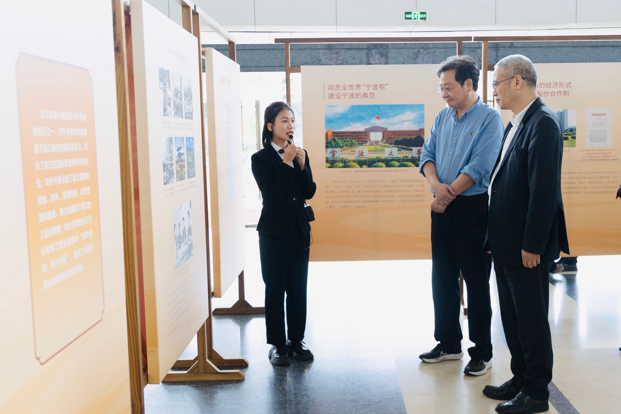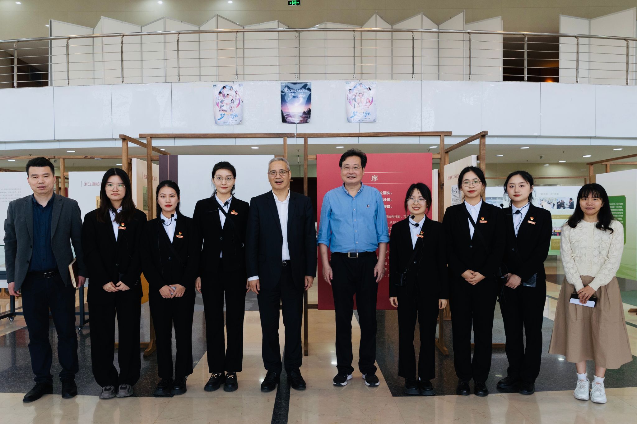 5月10日下午,校党委书记张土乔、校党委副书记程刚来到嘉量大会堂一楼大厅,参观“红船从‘浙’里起航——‘革命文物进高校’大型巡展,听取学校马克思主义学院“90、00”理论宣讲团的讲解,办公室、宣传部等职能部门负责人陪同参观。