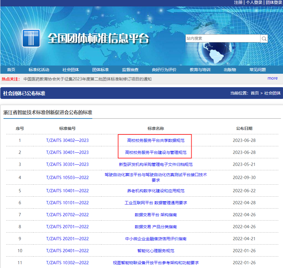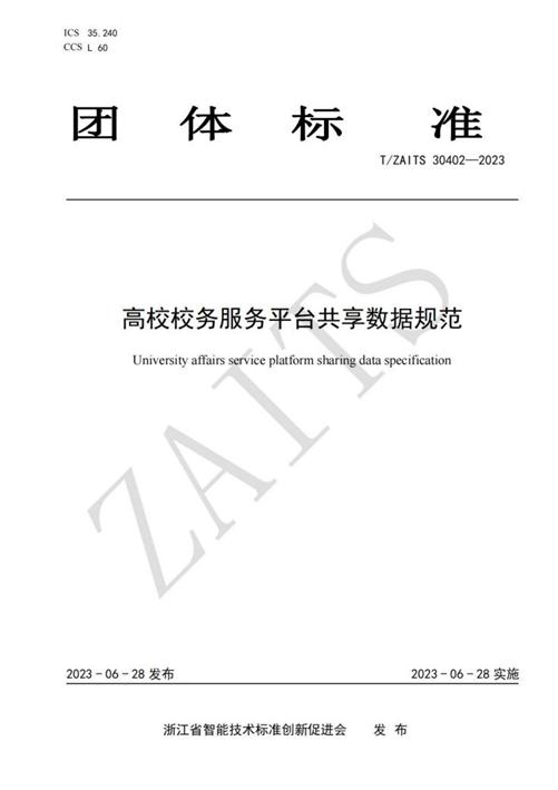 近日,由我校牵头起草,由浙江省智能技术标准创新促进会提出并归口的《高校校务服务平台建设与管理规范》和《高校校务服务平台共享数据规范》2项团体标准正式发布实施。
