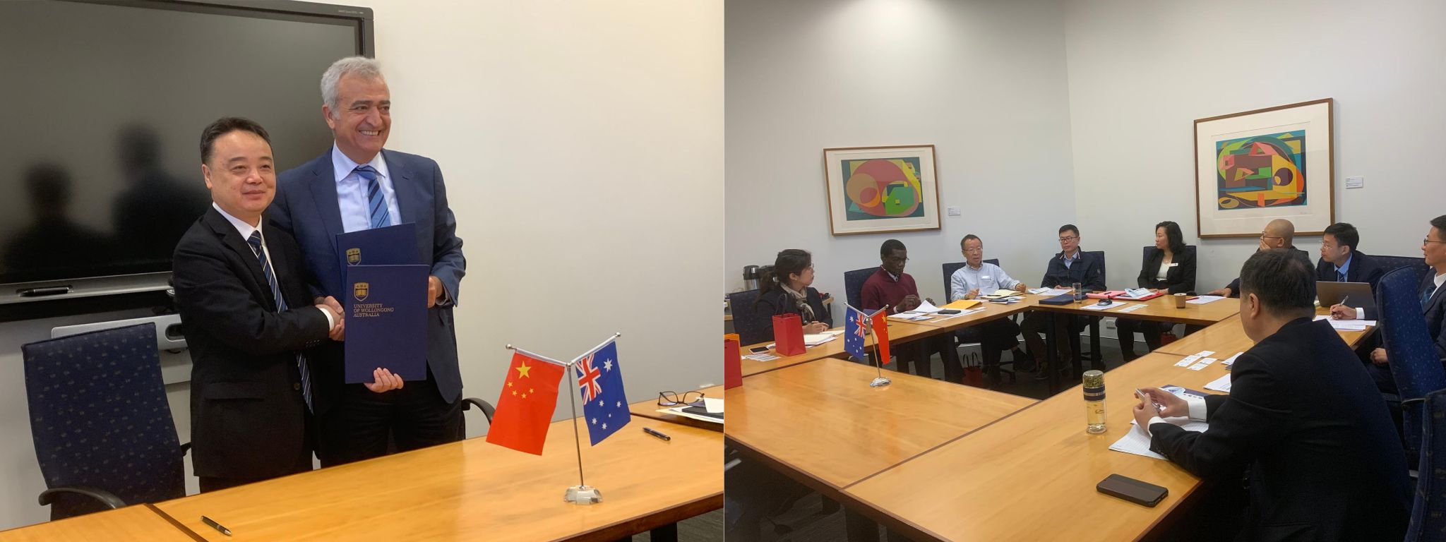 8月4日上午,代表团一行访问澳大利亚伍伦贡大学(UOW)。UOW工程与信息科学学部主任Gursel Alici教授热情接待了代表团并举行正式会谈。UOW国际战略部主管Lily An女士主持会议。双方回顾了师生交流情况并就学生联合培养、校际科研合作等议题开展深入讨论。双方同意进一步扩大本科生“2+2”学分互认项目的覆盖面,增加学生交流人数;在硕士、博士研究生培养方面创新合作模式,开展“2+2”博士联合培养;在科研合作方面,争取在国际项目合作中取得更多成果。随后,双方签署了两校学分互认协议。