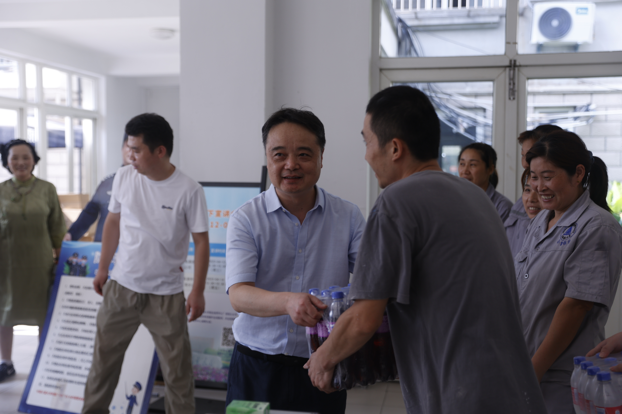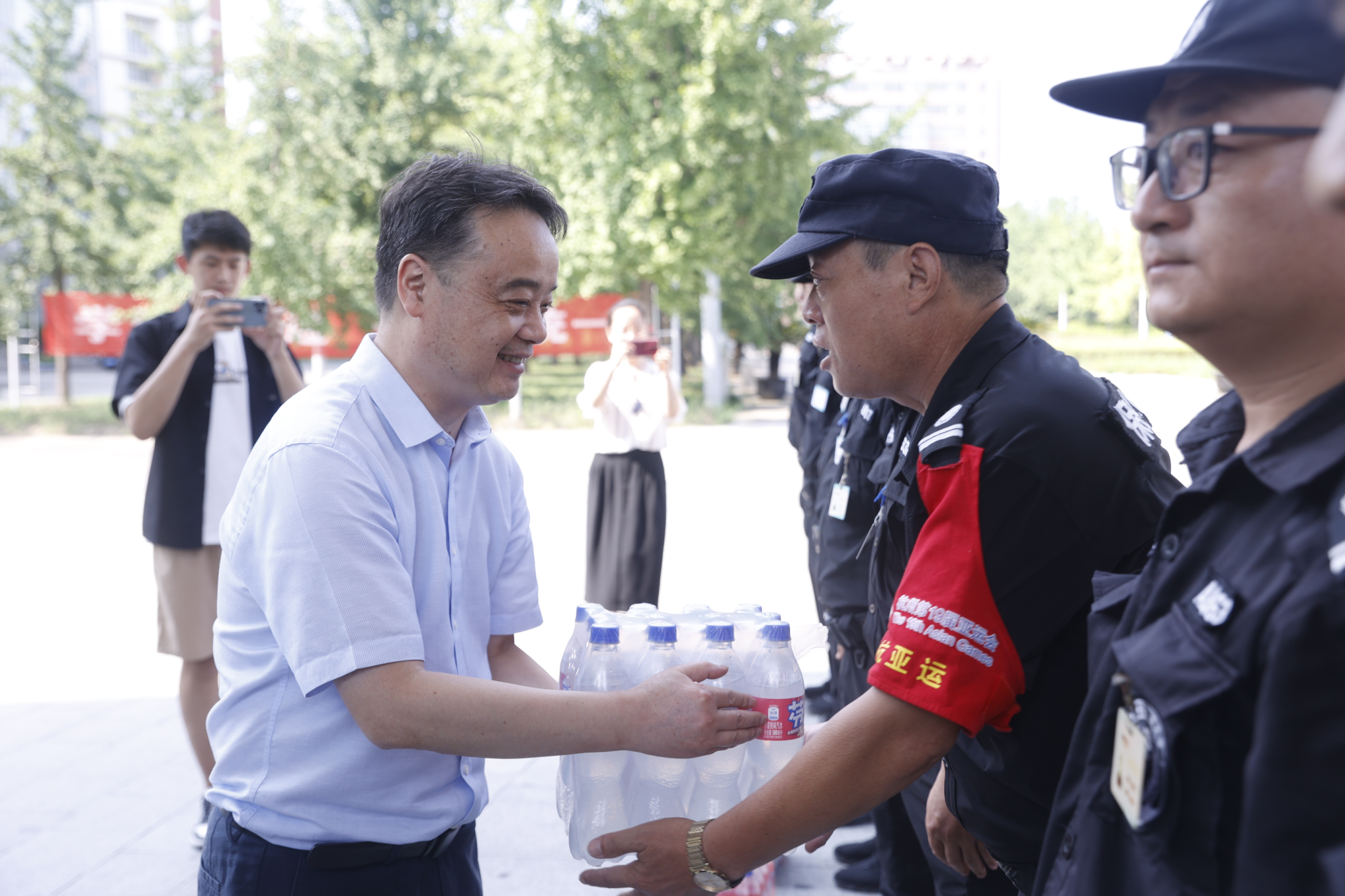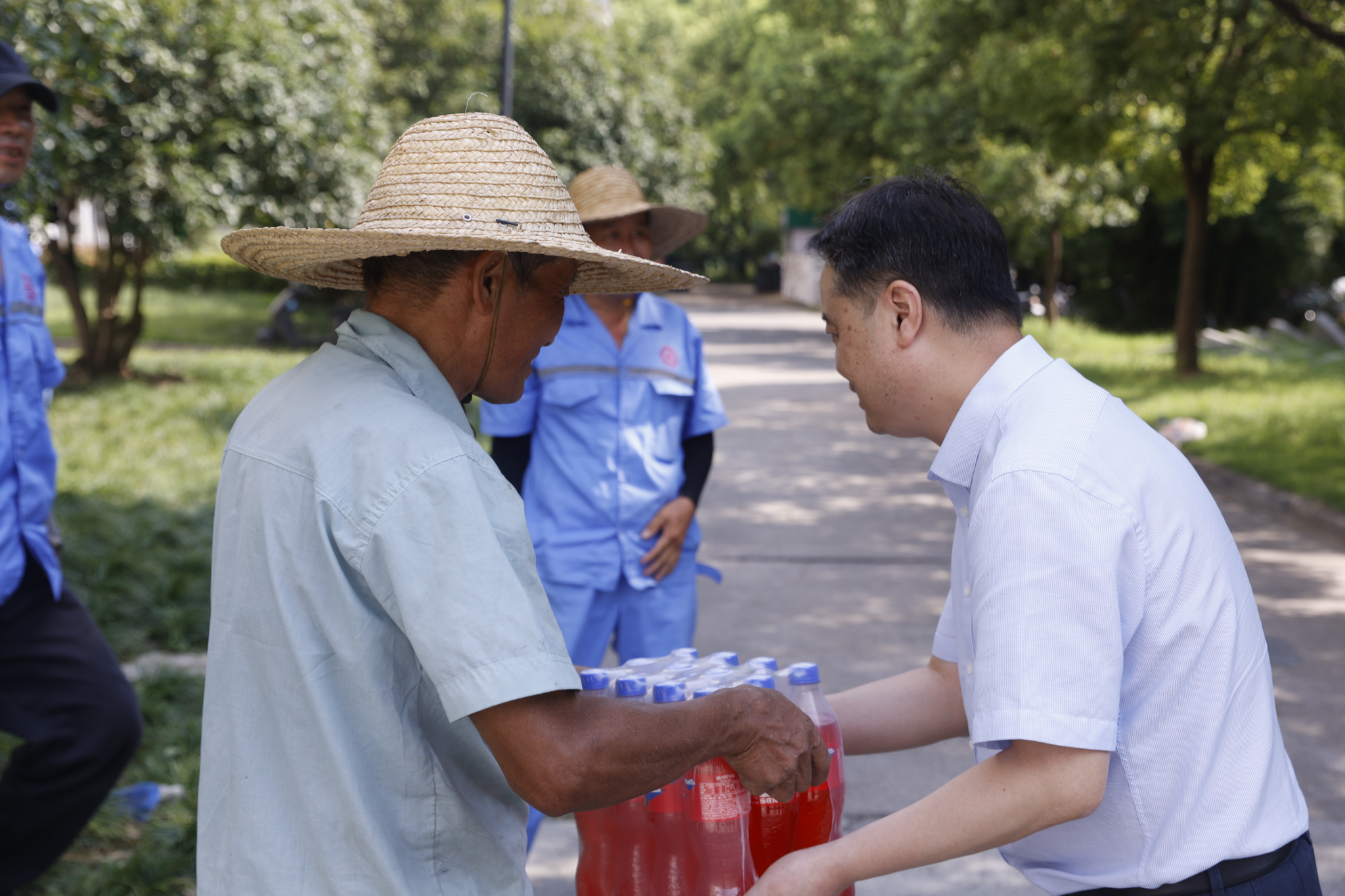 暑期以来,学校后勤保障系统一线员工不惧“烤”验、战高温、斗酷暑,默默奋斗在学校保障第一线,用坚守诠释责任、用汗水浇灌担当,用实际行动保障学校暑期各项工作正常运行。8月10日下午,校长徐江荣、副校长王迪钊带队,学校办公室、保卫处、校园建设处、后勤服务中心等部门负责人陪同,亲切慰问暑期坚守在岗的后勤系统一线员工,并为他们送去了防暑降温用品。