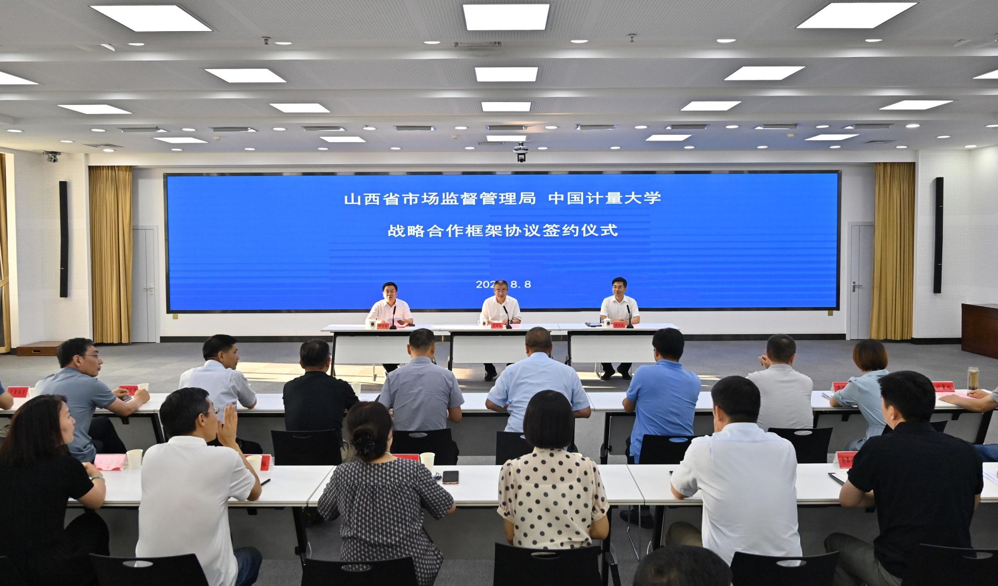 8月8日,我校和山西省市场监督管理局战略合作协议签约仪式在山西省市场监管局会议室举行。山西省市场监督管理局党组成员、副局长郭新安,二级巡视员郝志明,我校副校长王斌锐出席签约仪式。山西省市场监督管理局相关职能处室负责人,我校对外联络处、机电学院、质安学院、继教学院负责人参加签约仪式。