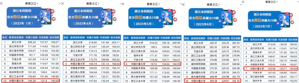 8月12日,浙江省教育厅官方微信公众号平台“教育之江”发布《浙江教育政务新媒体传播力7月排行榜》,我校官方微信公众号在浙江本科院校官方微信传播力排行中名列第7。截止7月,我校官方微信公众号本年度已连续4次、共计5次入围全省本科院校官微传播力月度排行榜十强。此外,我校官微本年度也取得了19次进入中国青年报官微排行榜浙江省周榜前10,4次进入中国青年报官微排行榜浙江省月榜前10的好成绩。