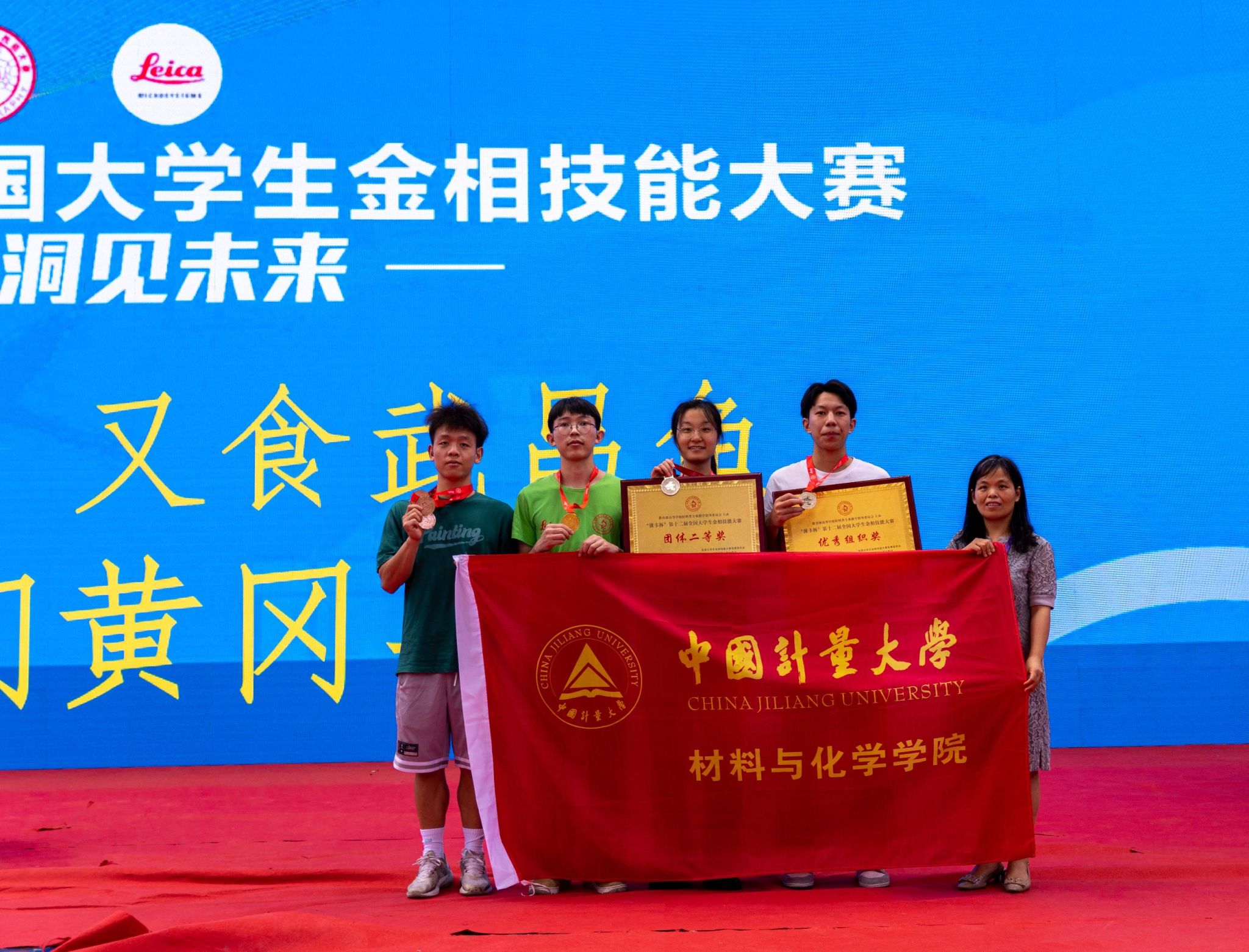 由教育部高等学校材料类专业教学指导委员会主办,郑州大学承办的“徕卡杯”第十二届全国大学生金相技能大赛于8月14日落下帷幕。我校材料与化学学院21级本科生何锡江同学获得国家级个人一等奖,张炜笛和张峻铭两位同学获得国家级个人二等奖,徐顺基、陈珏强和俞昊君三位同学获得国家级个人三等奖;经过浙江省分赛区复赛获得决赛参赛资格的何锡江、张炜笛和张峻铭三位同学,在紧张激烈的决赛中稳定发挥,代表我校荣获团体二等奖,取得突破性成绩,为学校争得了荣誉。同时,中国计量大学作为分赛区承办单位荣获优秀组织奖。