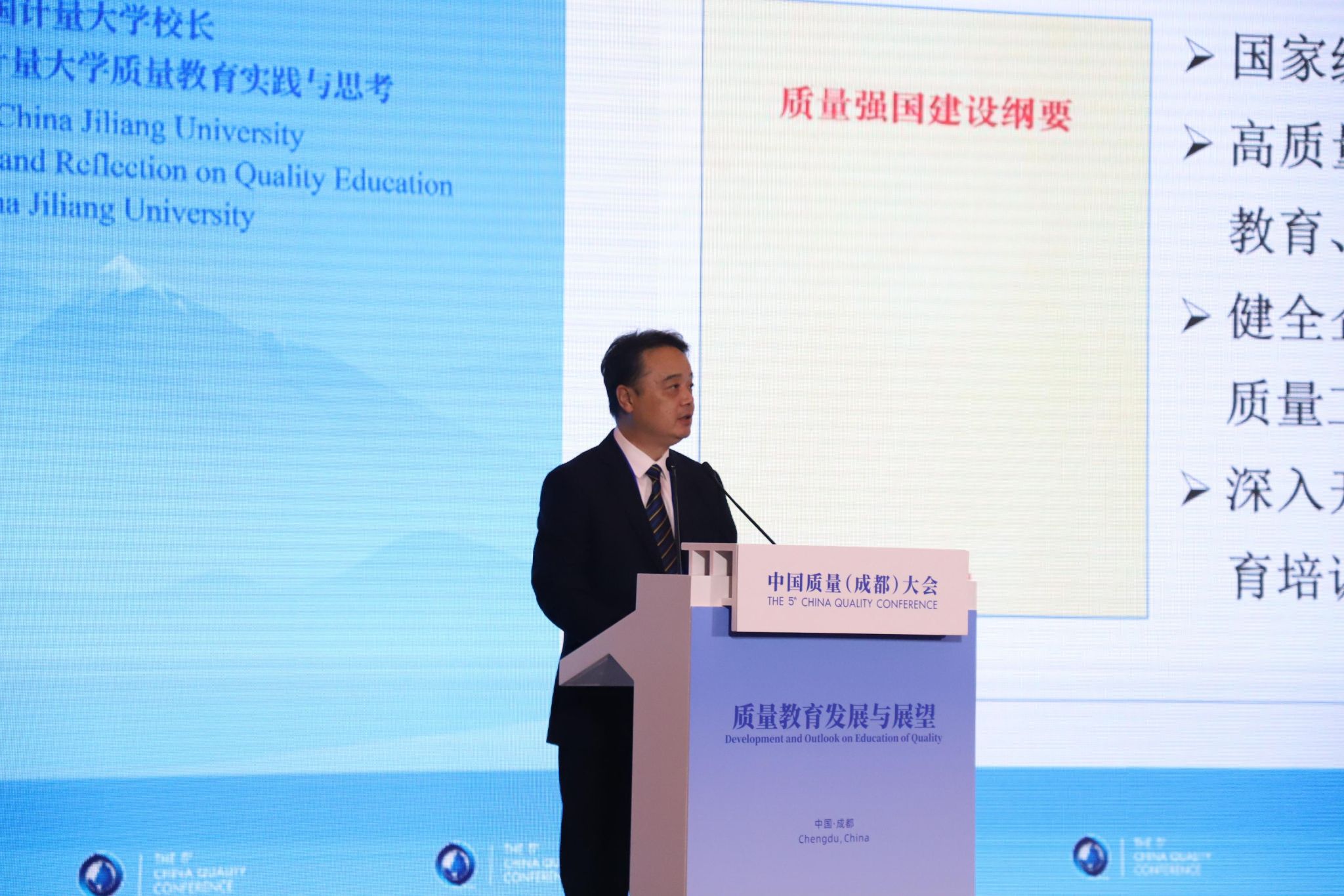 校长徐江荣应邀在分论坛上作题为《中国计量大学质量教育实践与思考》的主旨演讲。他从质量教育,质量强国之本;行业高校,质量教育先驱;质量教育思考等三方面展开发言。分析了质量教育、质量人才在质量强国中的重要性,介绍了中国计量大学在质量教育方面的创新实践以及质量管理工程专业培养质量人才的八个创新举措,并分享了关于质量教育的七点思考。