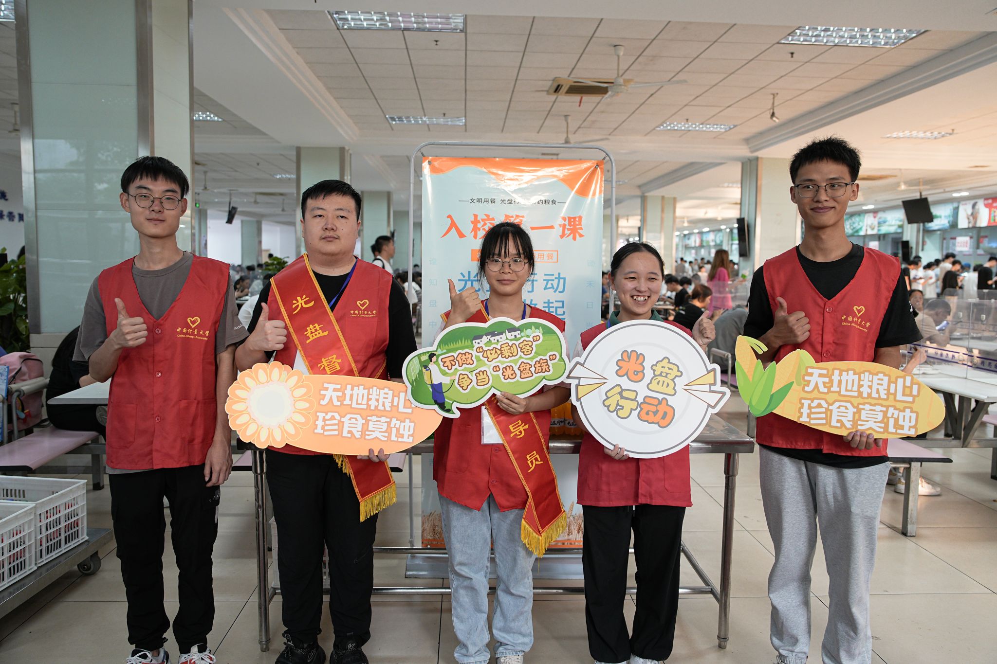 同时进行的还有已经连续3年在开学季面向全校学生开展的“入学第一课”——“光盘行动,从我做起”主题教育活动。当天,学校在各食堂现场进行“活动签名”“按需点餐”“光盘行动”“垃圾分类”等宣传教育活动,由学生担任光盘督导员,全校七个餐厅为完成“光盘”任务的同学发放小奖品,将绿色低碳的环保理念从入学第一天开始就深深植入同学们的心中。