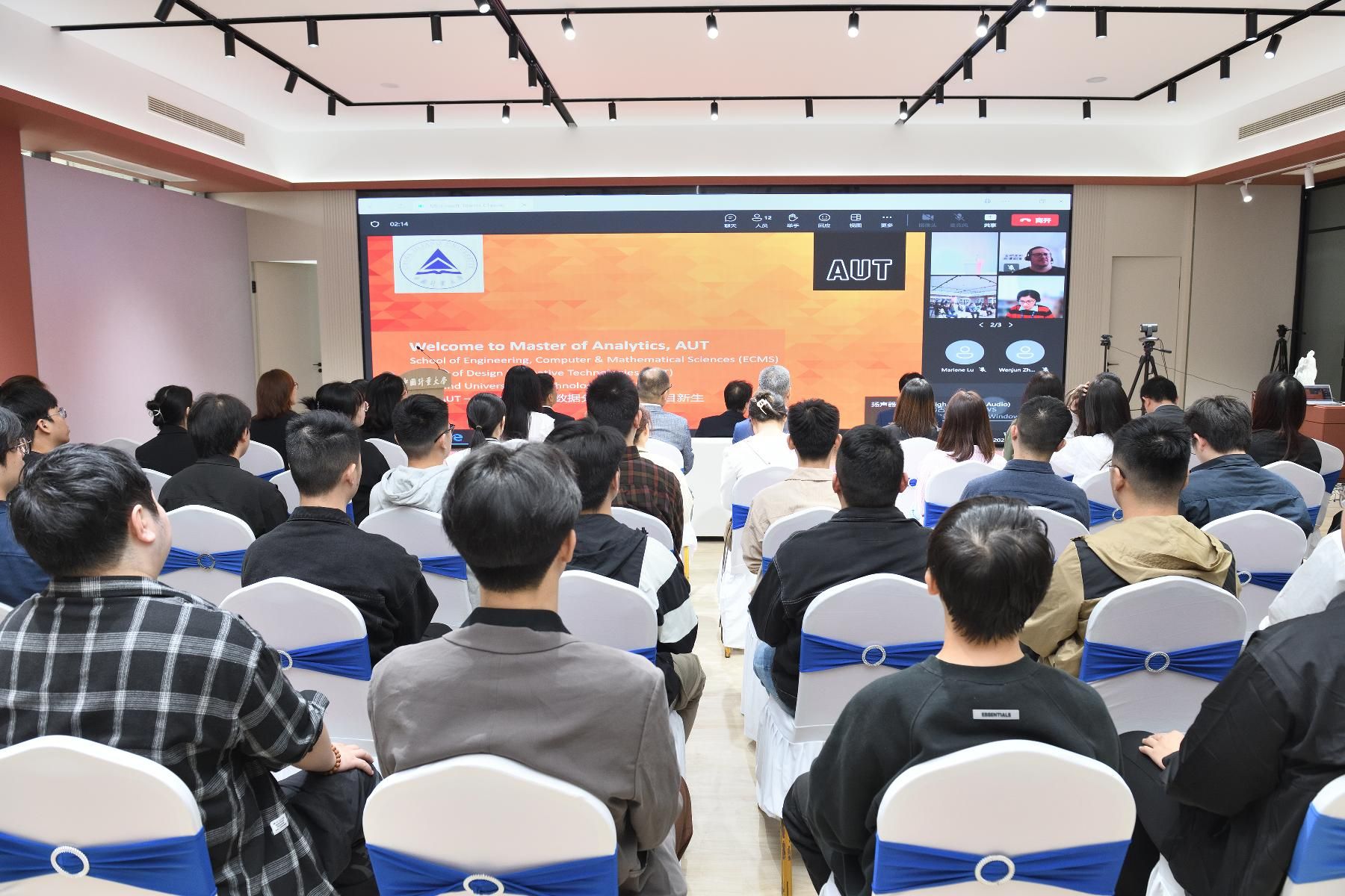 Tek Tjing Lie教授代表奥克兰理工大学致欢迎辞,从历史沿革、学科专业、师资队伍、国际合作等方面介绍了奥克兰理工大学的基本情况,并对该项目所在的计算机、信息与数学科学学院做了详细介绍。数学系主任Jiling Cao教授介绍了数据分析学项目的专业培养计划、教学安排、师资配备等情况。数据分析学项目10余位任课教师分别做了自我介绍,并对其任教的课程做了简要说明。