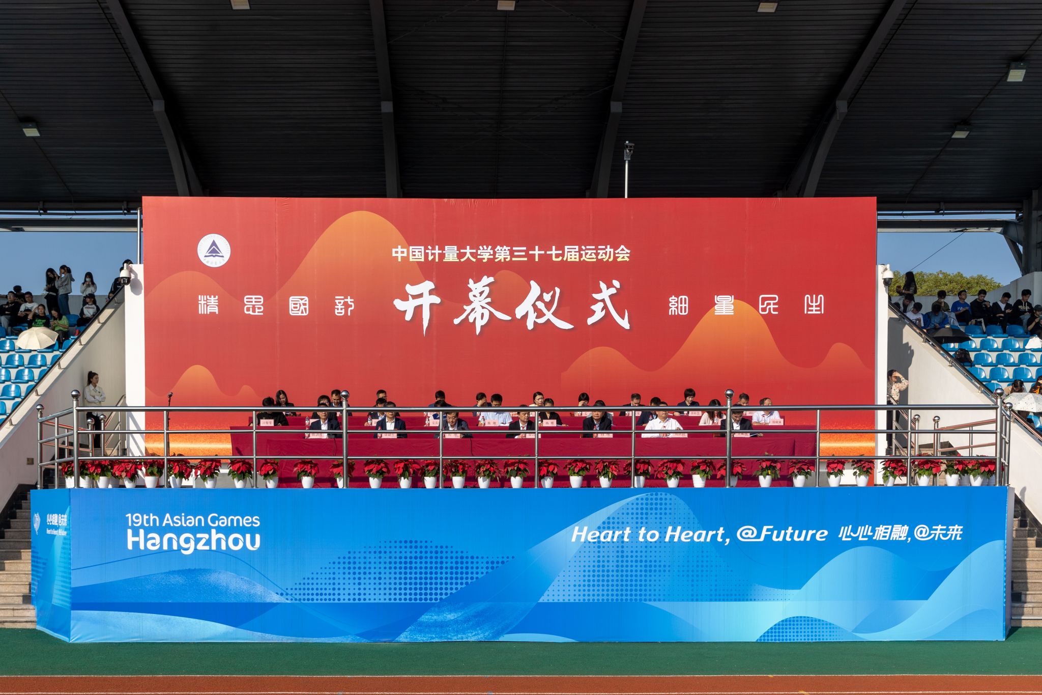 “建校45年来,我校始终高度重视体育工作,坚守‘健康体育、快乐体育、终身体育’理念。”党委副书记程刚在开幕式上指出,学校不断完善体育运动设施,大力开展阳光体育活动,主动创新体育教学方式,营造良好体育运动氛围,帮助广大师生树立正确的体育观、健康观、生活观。今年举办运动会的场地正是杭州第19届亚运会足球项目训练场地之一,亚运会期间,共有9个国家、10支足球队伍、464人来场馆训练。“在这里,我们能更加清晰感受亚运,也激励着运动员们赛出更好成绩。”他希望全体师生员工在紧张的工作学习之余,积极运动,把体育融入日常工作、学习和生活,保持青春活力,拥有健康身心;全体运动员向奥运健儿学习,发扬“更高、更快、更强、更团结”的奥林匹克精神,顽强拼搏,挑战自我,赛出风格,赛出水平;全体裁判员、教练员和工作人员恪尽职守、公平公正、严格执裁,以高度的责任心和热情周到的服务,优质高效地完成赛会各项工作,把本届赛会办成一次振奋精神、鼓舞斗志的盛会,办成一次高效团结、安全顺畅的盛会,办成一次凝聚力量、促进发展的盛会。
