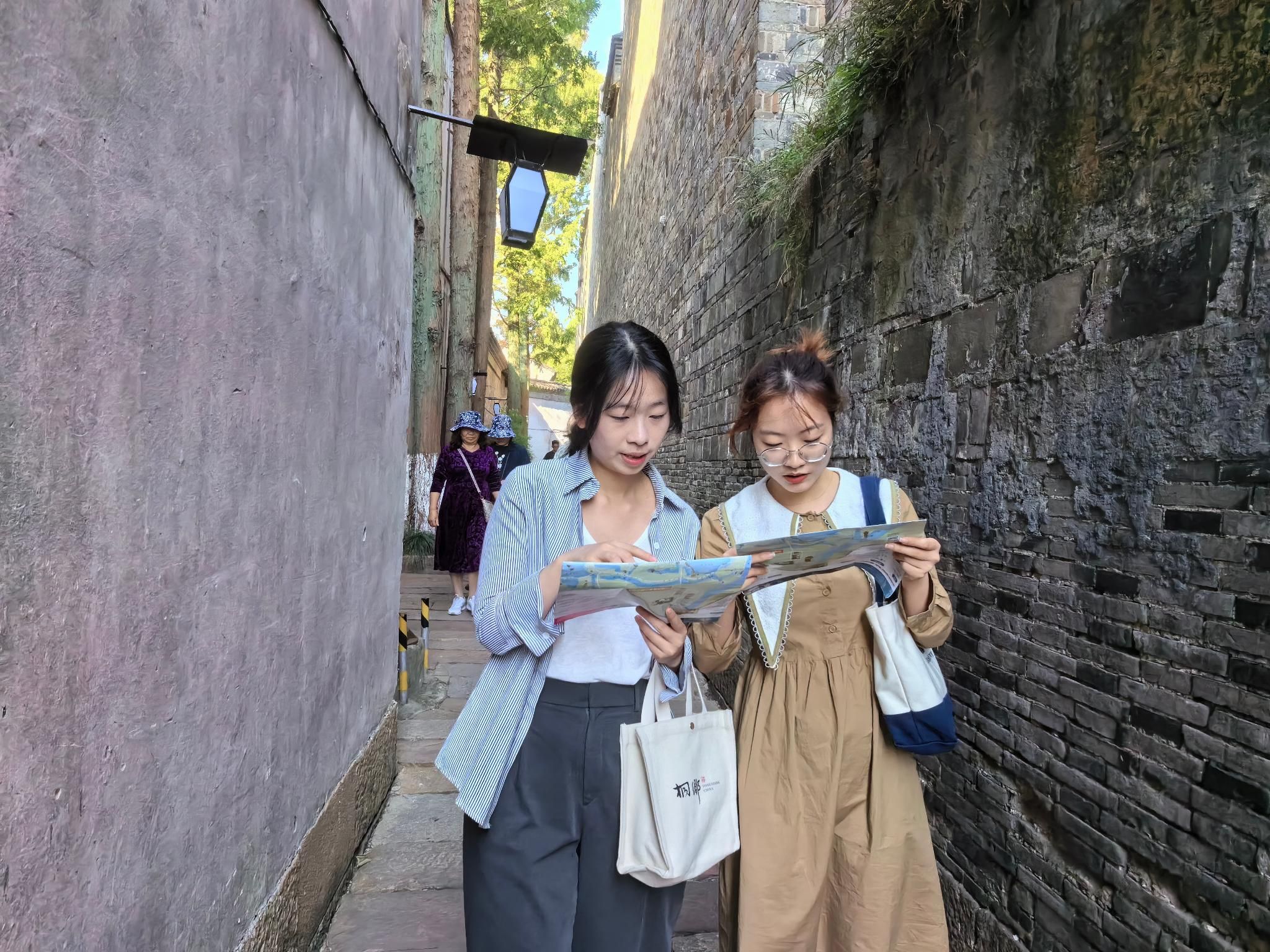 清晨,刚刚苏醒的西栅大街就迎来了来自中国计量大学的小梧桐们。再热辣的太阳也抵不住小梧桐们的热情,大家围着钟伟老师积极地提问题记笔记,争取最快熟悉线路。接下来的三天,小梧桐们一遍又一遍踏过乌镇的青石板,爬上乌镇错落的桥,越过乌镇碧绿的水。每一张地图都翻旧翻烂,每一条街巷都留下了“小梧桐”的足迹。