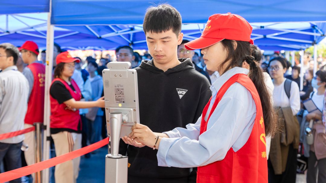 4月14日,中国计量大学“三位一体”综合评价招生考试正式开考。上午下起大雨,考生的迎考热情却不减反增。今年,共有7711名考生报考中国计量大学,经学校书面评审和缴费,共有2200余位考生具备参加“三位一体”综合评价招生考试资格。为做好相关工作,学校精心筹划组织,规范考试流程,做好考生和家长服务工作。