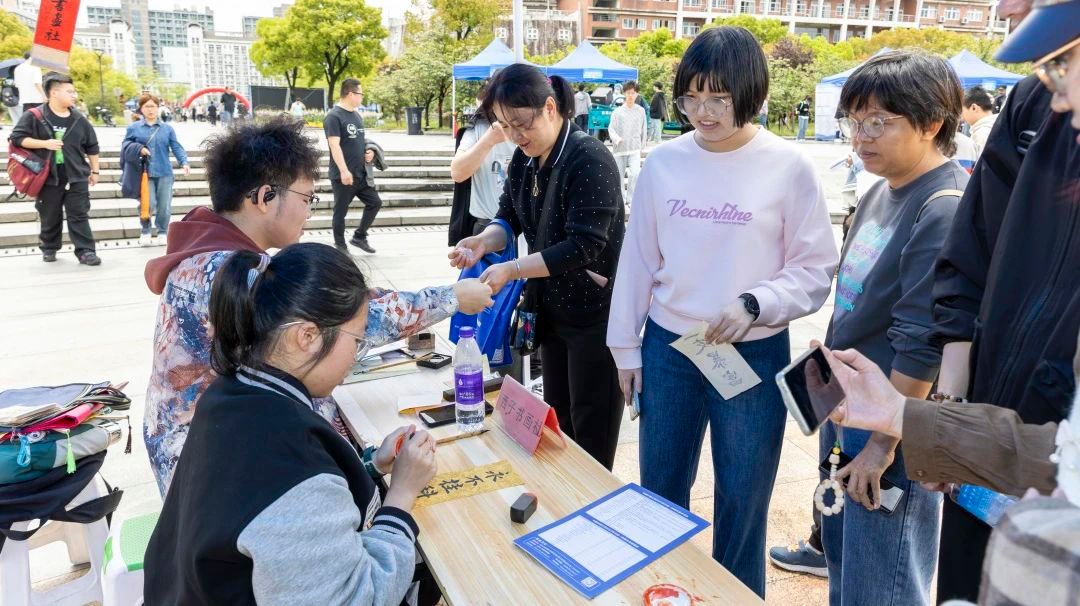 学校举办校园开放日,开放计量博物馆等展厅,让考生和家长参观了解计量文化和学校校史校情。来自绍兴的一位陈姓家长在启明广场上逛了一圈:“学校环境特别好,尤其是绿化这块,一进来就感觉特别有生机,而且学校的雨天服务也特别好,给我们家长提供了雨披以及行李寄存的地方。”在嘉量大会堂,学校设置了家长休息区,通过专业宣传片展播的形式,向家长推介学校优势学科和特色专业。同时,在启明广场专门设置招生宣传点、校园文化展示区,布置展出学校和学院的宣传展板,为考生和家长举办小型高考招生咨询会。各学院在现场设置专业咨询台,书记、院长及专业骨干教师热情耐心地接受咨询。陈同学的母亲正陪着她看面试相关资料,她表示,孩子自己特别意向人工智能方向,“我刚才也去了解了相关信息,计量在这个专业上排名也是不错的。”青年马克思主义者协会 、仰仪智能车协会 、数学建模协会、SHOW蜜格调甜点社 、西子书画社等社团开展校园活动展示,社团成员与考生家长热情互动,零距离感受大学校园文化氛围。启明广场摊位前,学校为考生们准备了“文创显眼包”,顷刻间就被一抢而空,很多考生表示“没领到真遗憾!”“背着这个包出去,就是最靓的仔!”考虑到周日会出现下雨天气,学校提前为考生和家长准备了一次性雨衣、雨伞,还在嘉量大会堂准备了热绿豆汤等。