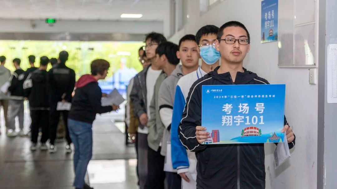 中国计量大学“三位一体”综合评价招生考试主要采用无领导小组讨论的方式进行。走出考场的方思远回忆了考试流程:“首先是集中在教室等待分组,接着到达考场考试。考试过程中,先会进行一个破冰环节,大家相互自我介绍。考题给出后,会有单独思考、个人观点陈述、小组集体讨论、总结阐述等环节。”