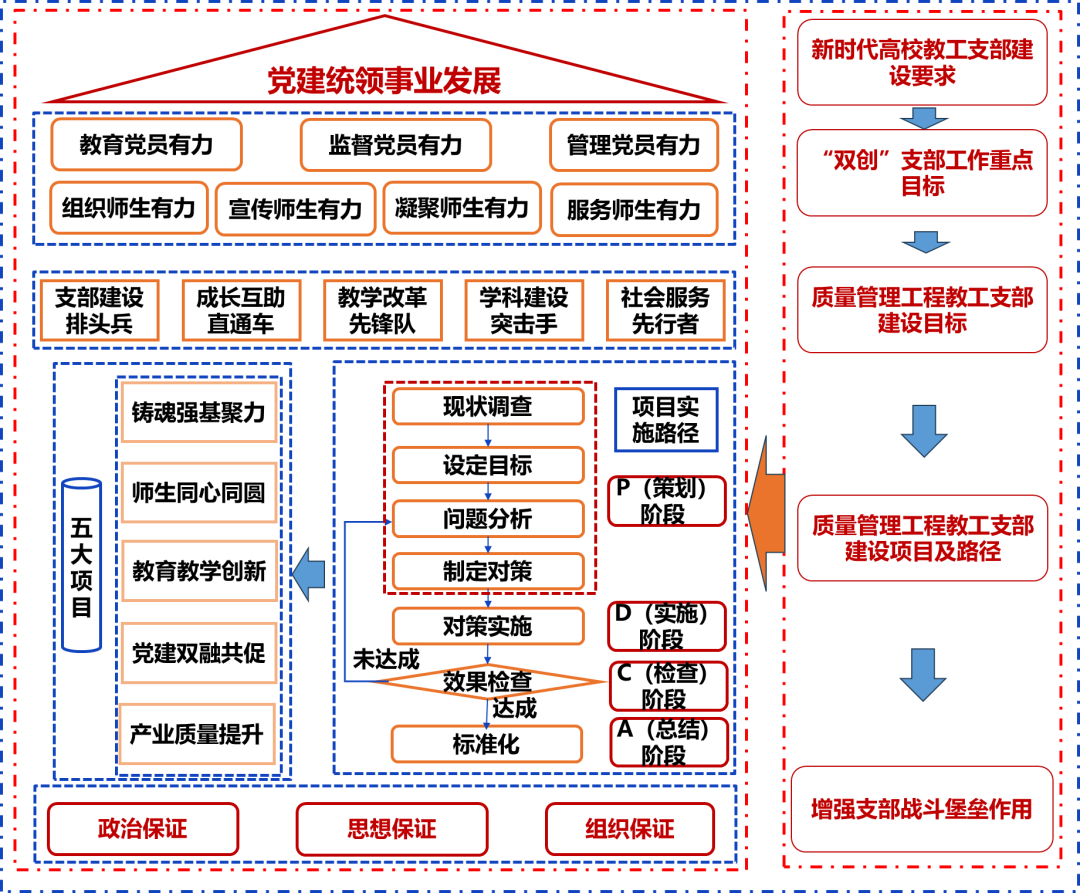 质量管理工程教工党支部将质量理念融入党建工作中,在党建引领下推进党建工作与中心工作有机融合。全面实施“铸魂强基聚力、师生同心同圆、教育教学创新、党建互融共促、产业质量提升”五大项目,努力成为“支部建设排头兵、成长互助直通车、教学改革先锋队、学科建设突击手、社会服务先行者”,力争在高校党支部建设中起到示范引领作用。