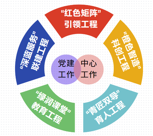 为了让“小磁铁”焕发“大能量”,党支部基于自动化专业和控制学科特色,形成了“五彩党建”工程:即“红色矩阵”引领工程、“橙色智造”科创工程、“青匠双导”育人工程、“绿润课堂”教育工程、“深蓝服务”联建工程。