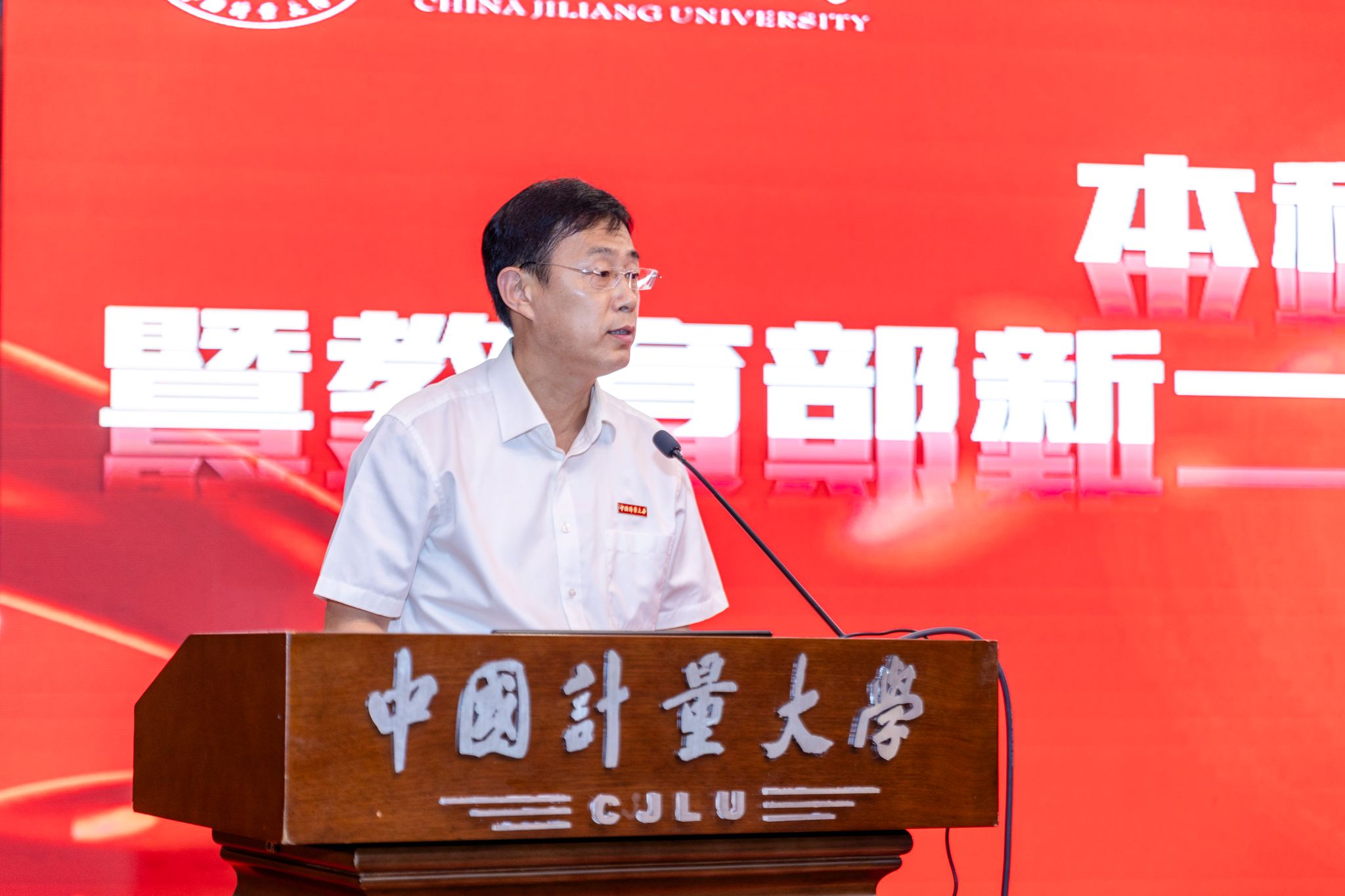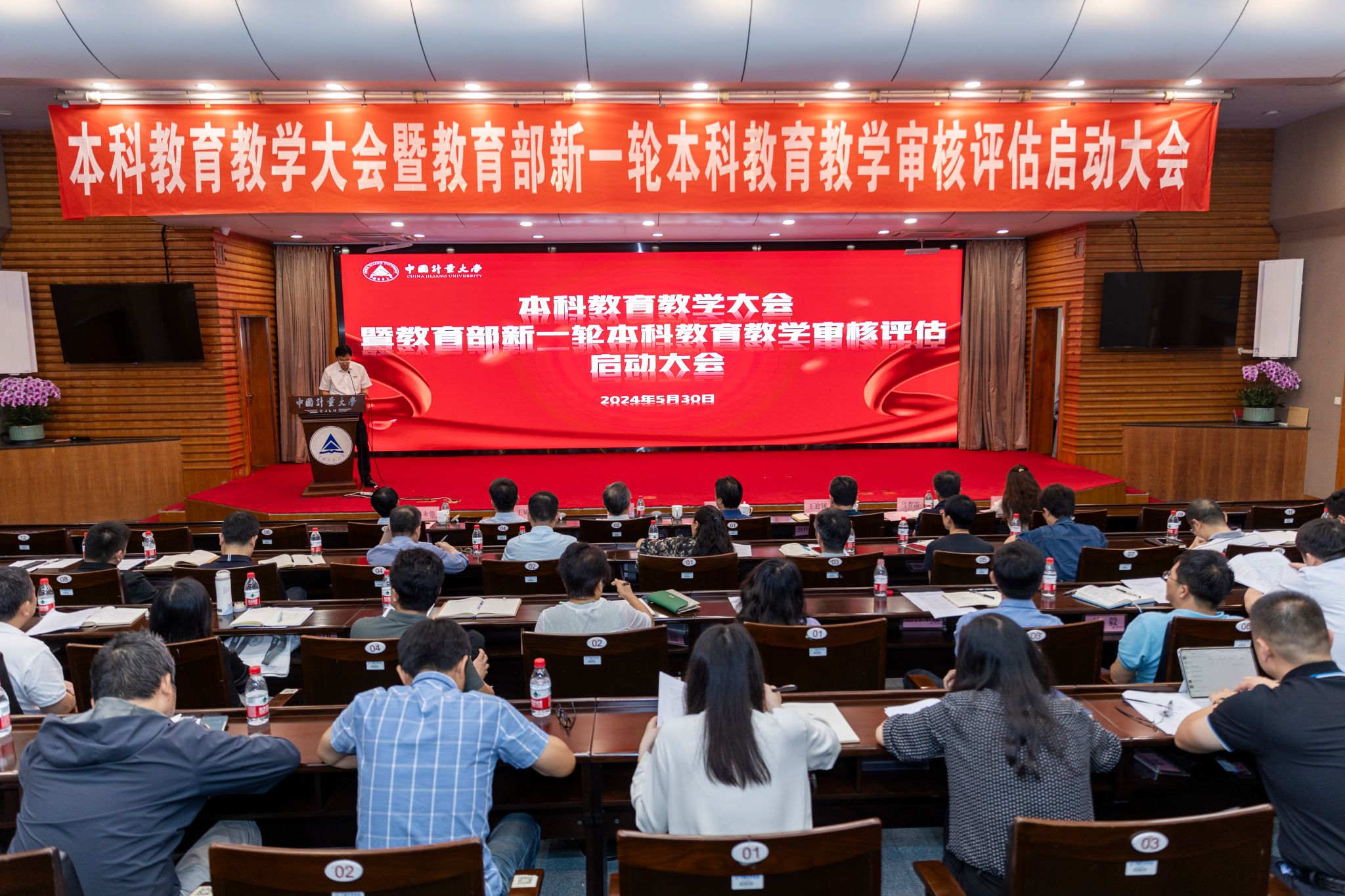 为进一步落实立德树人根本任务,巩固本科教育教学中心地位,全面迎接教育部新一轮本科教育教学审核评估,2024年5月30日下午,学校在闻厅二楼报告厅召开中国计量大学本科教育教学大会暨教育部新一轮本科教育教学审核评估启动大会。徐江荣、肖刚、王迪钊、王斌锐、马春波、王新庆、陈永强、王乐等校党委班子成员出席会议。会议由副校长王新庆主持。